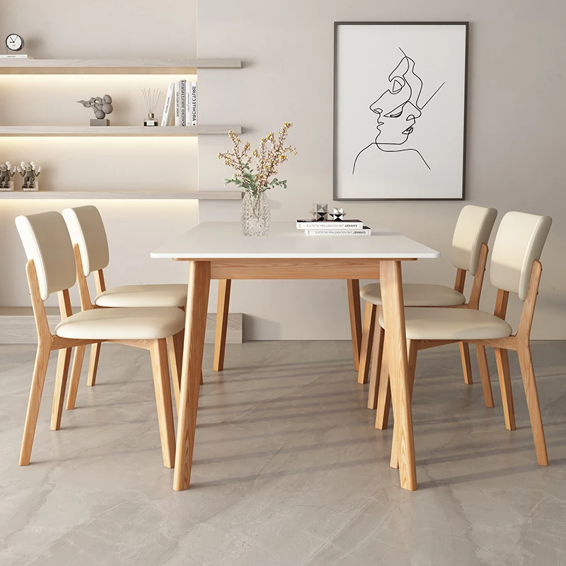 Nordic Style Solid Wood Dining Table and Chair Set - Rectangular Ash Wood Home Dining Table for Small Spaces, Perfect for Cozy Restaurants and Modern Interiors