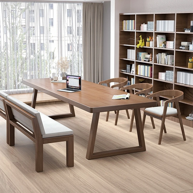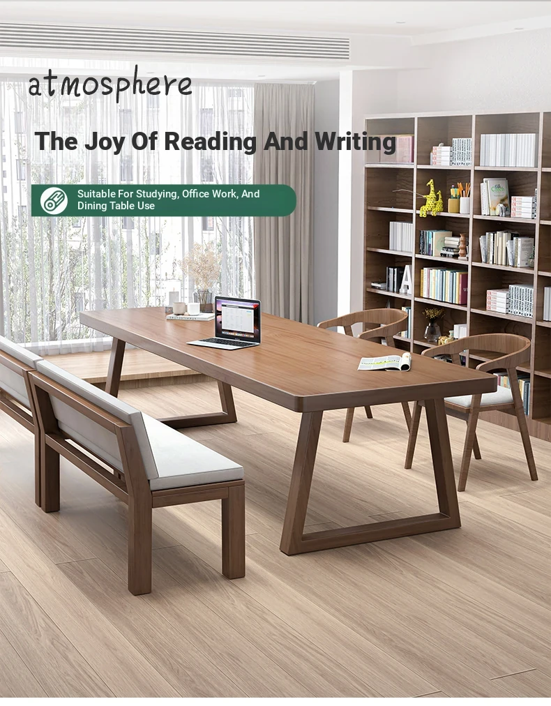 Abison Scandinavian Solid Wood Large Desk – Minimalist Double Study Table for Home Office, Ideal for Living Room & Workstation, Perfect for Collaborative Learning and Productivity.