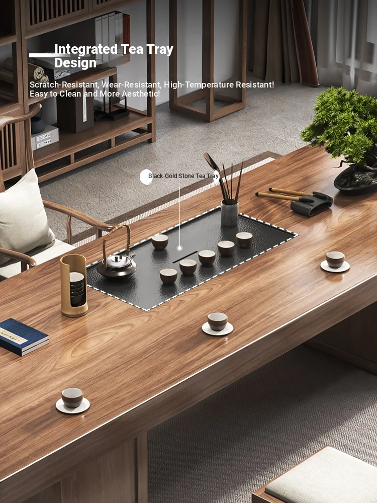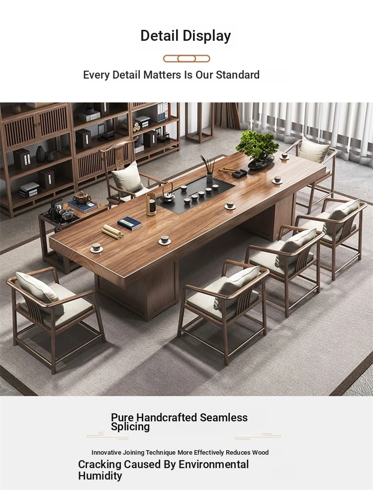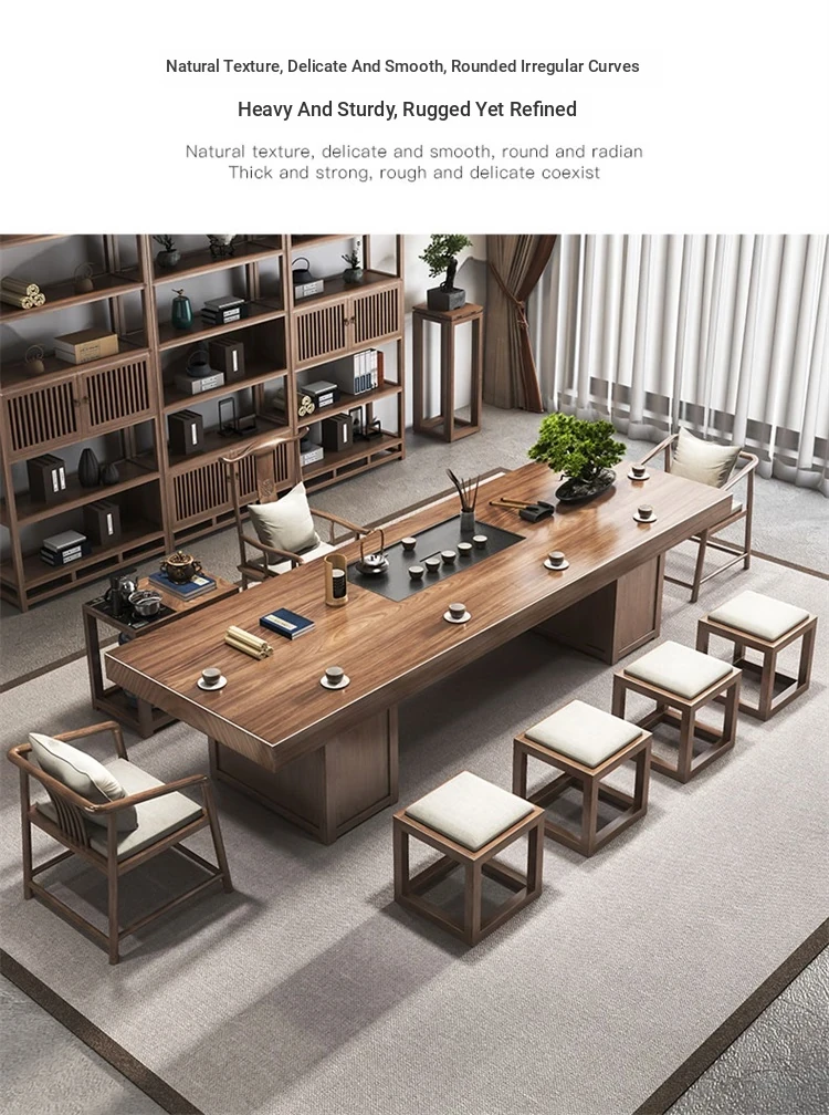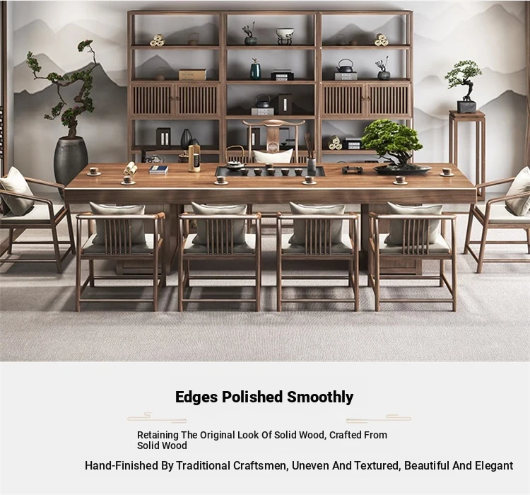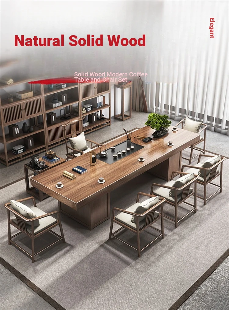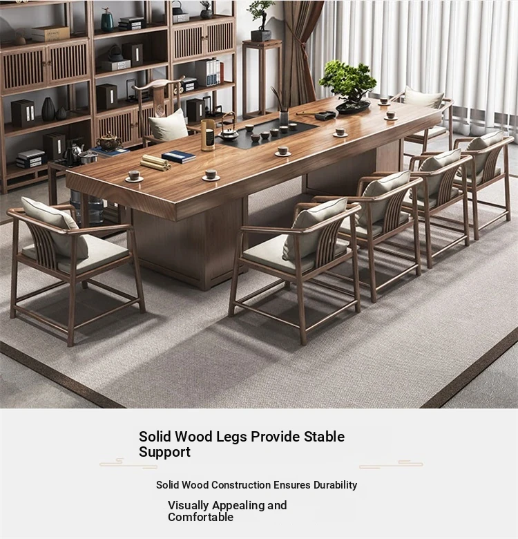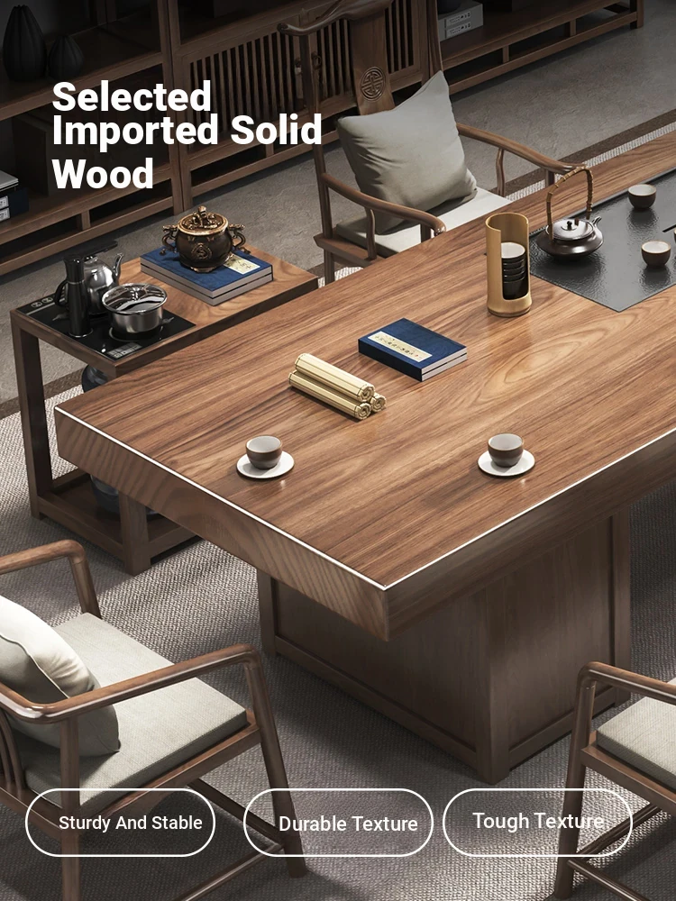 Duke of Golden Sands Tea Table and Chair Set - New Chinese Style Solid Wood Large Board for Elegant Gatherings
