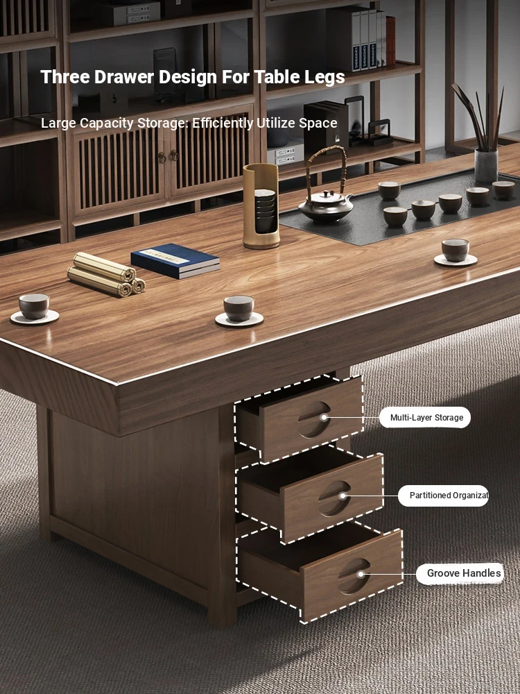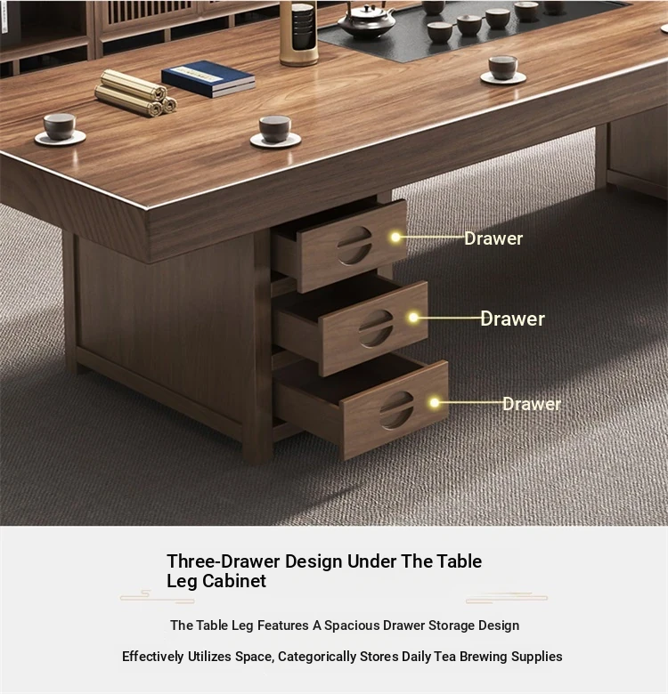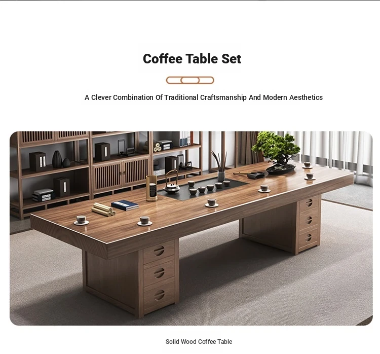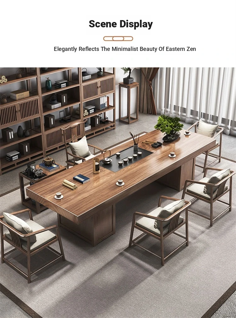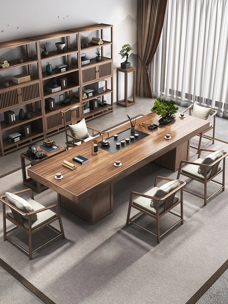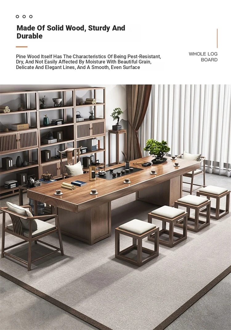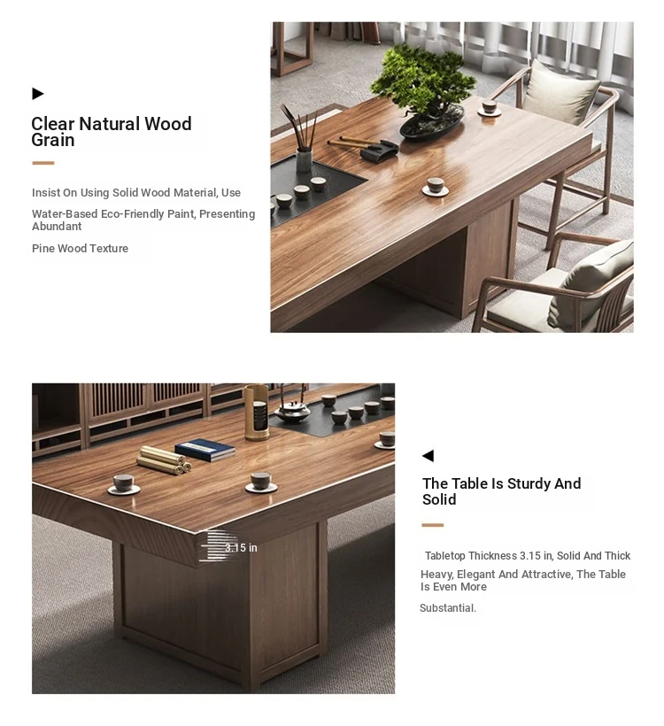 Duke of Golden Sands Tea Table and Chair Set - New Chinese Style Solid Wood Large Board for Elegant Gatherings