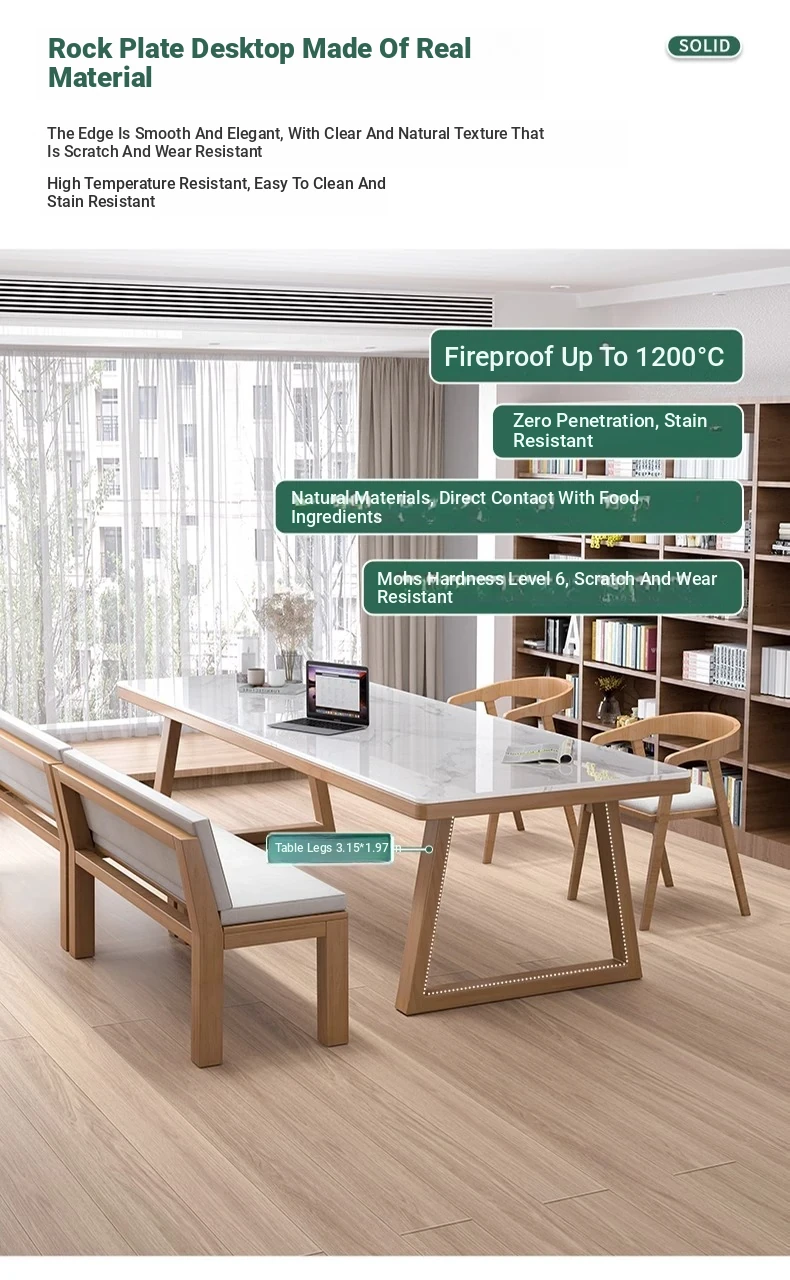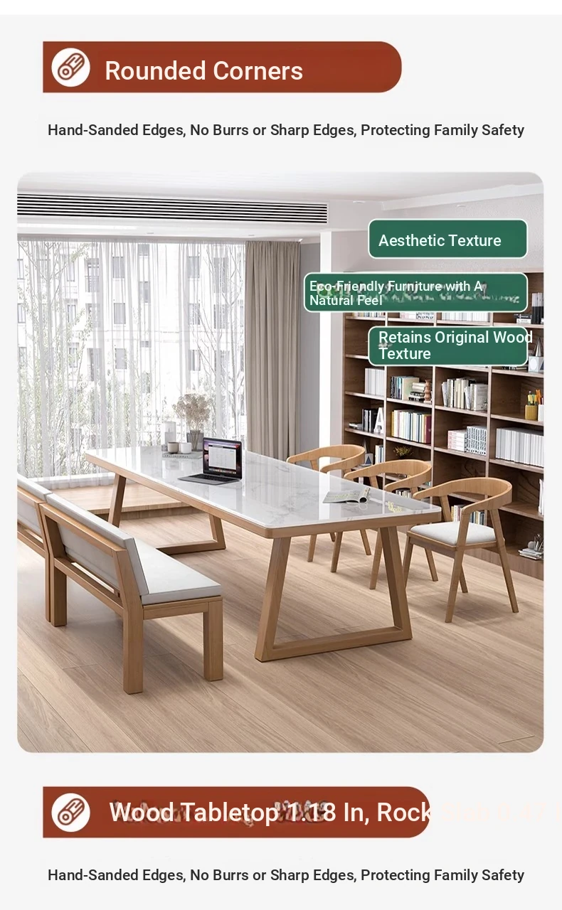Ebisen Solid Wood Rock Plate Multi-Function Desk - Stylish Study and Dining Table for Home, Office, and Living Room | Spacious Workstation & Study Desk Solution | Perfect for Productive Living!