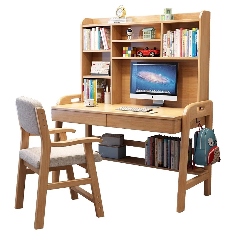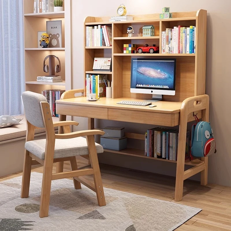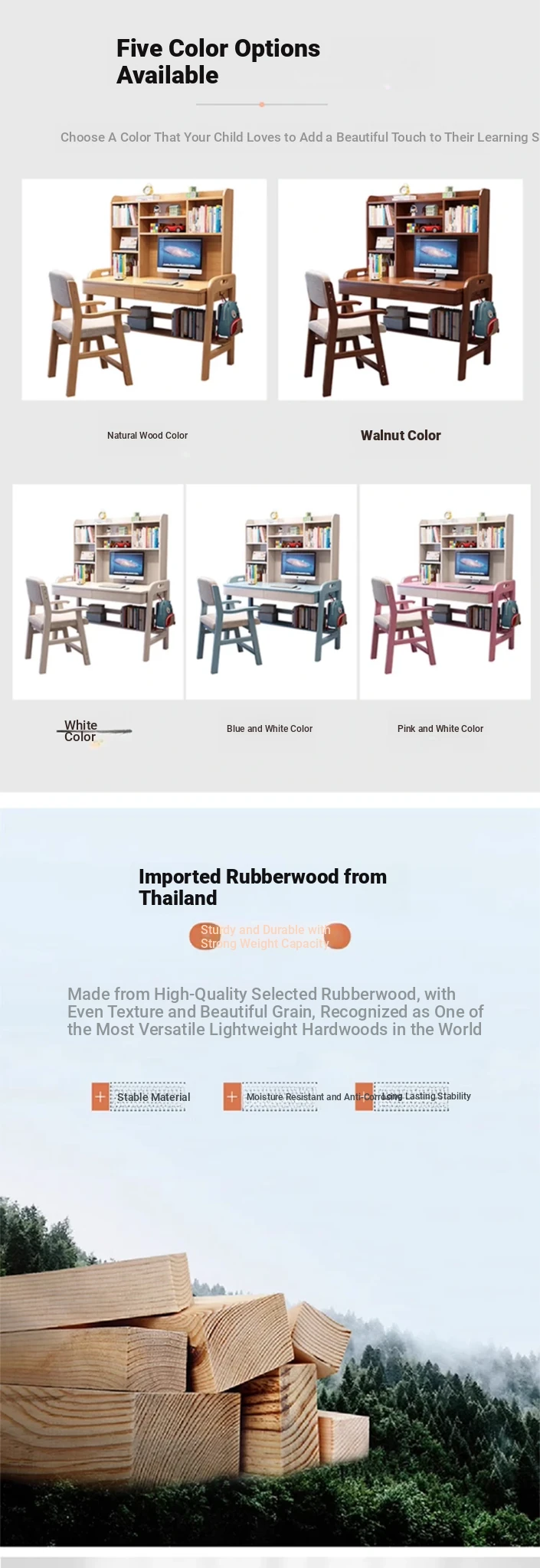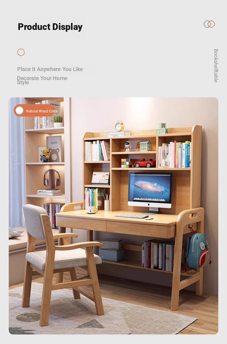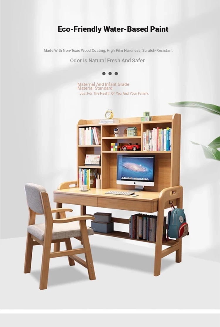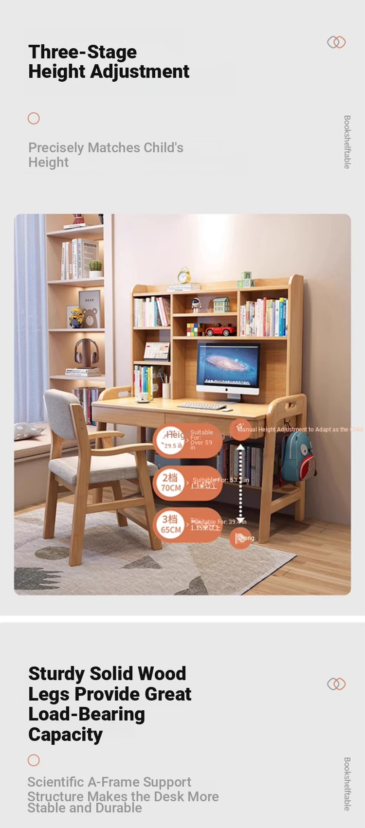 Elevate Your Child's Study Experience with the YUEMI Solid Wood Adjustable Desk – Perfect for Learning, Writing, and Working. Features a Storage Bookshelf and Ideal for Bedrooms and Offices.