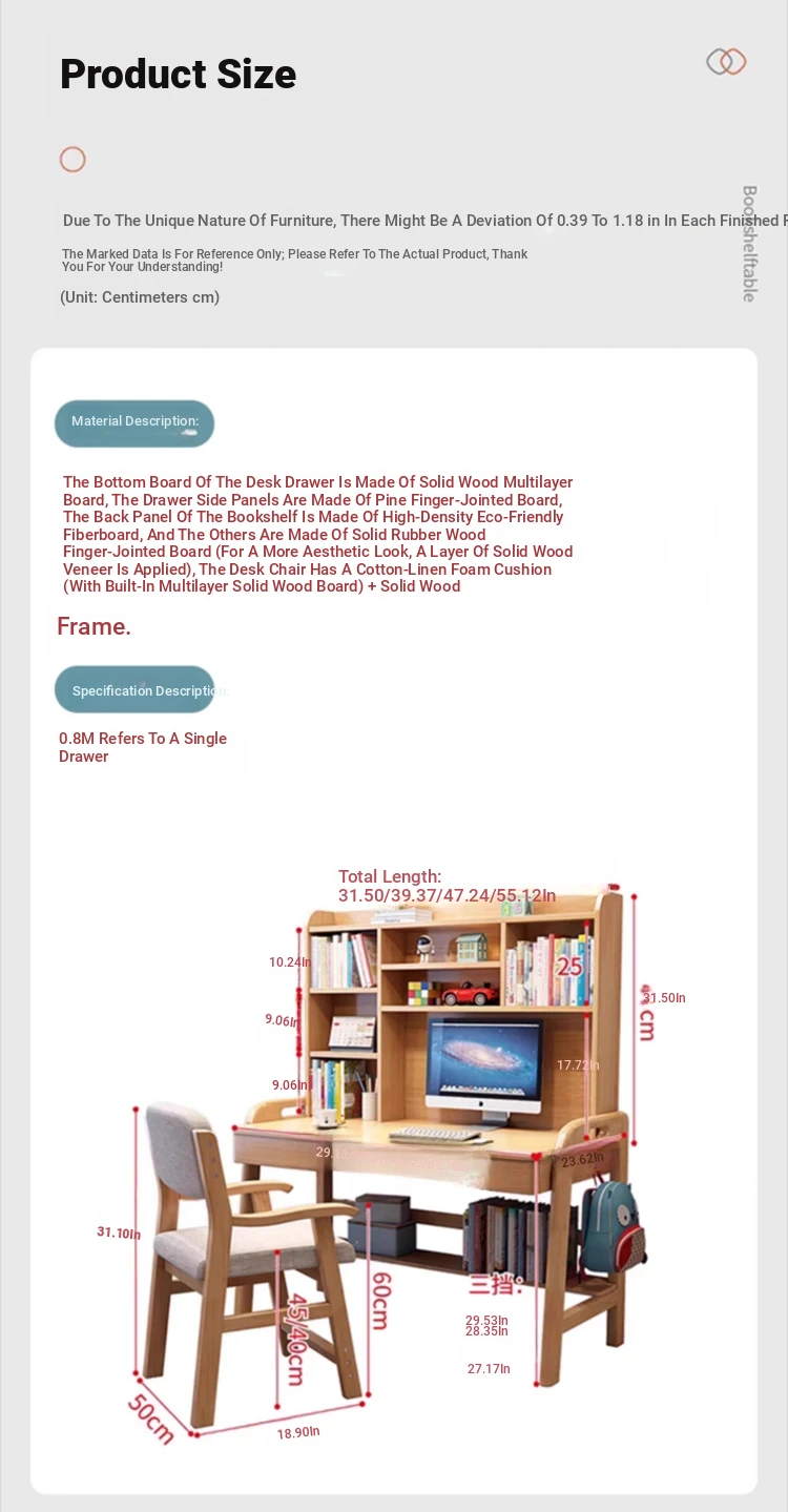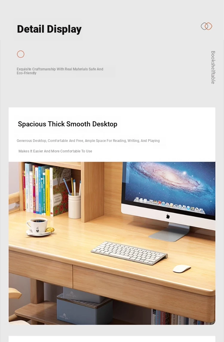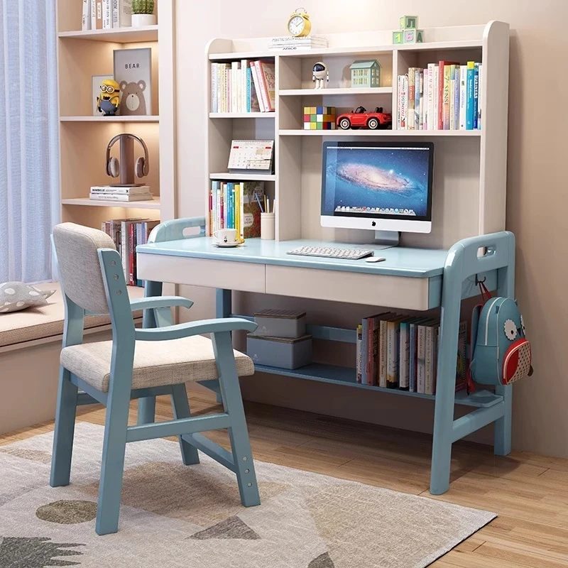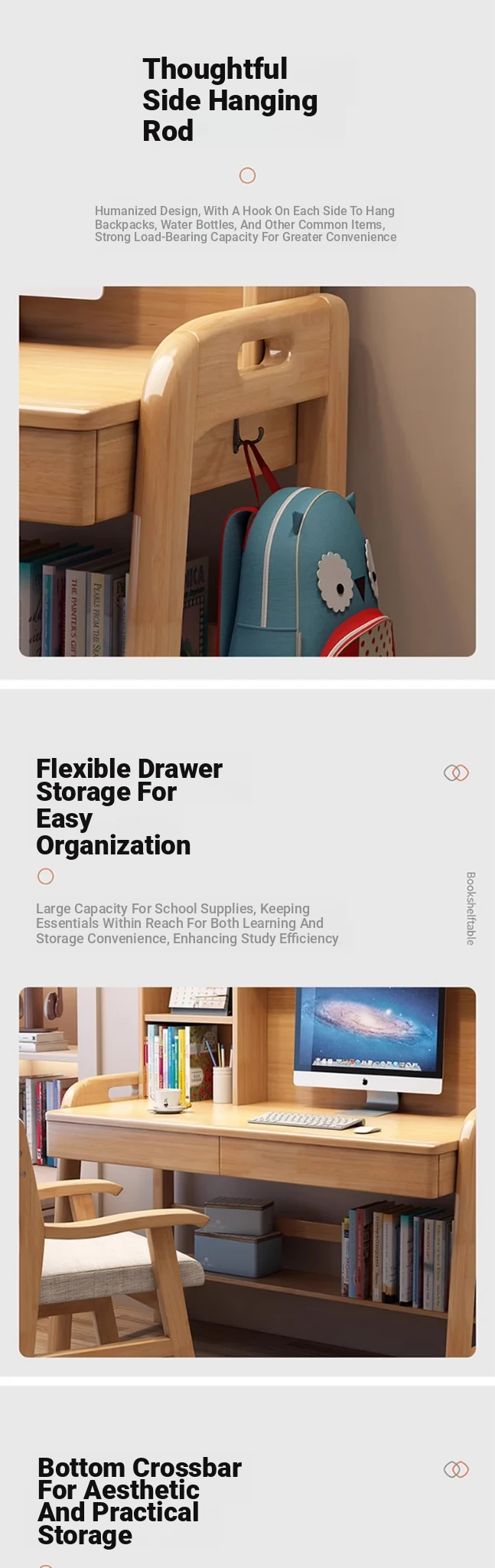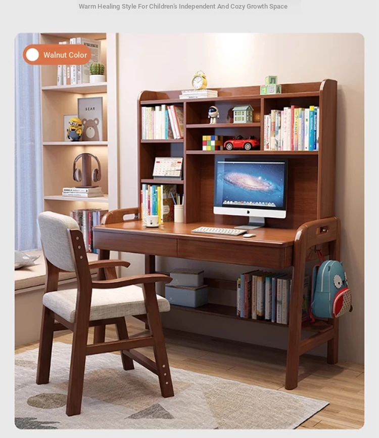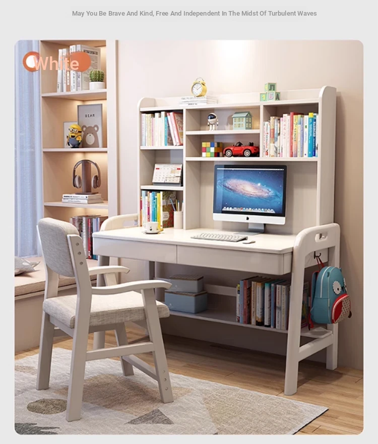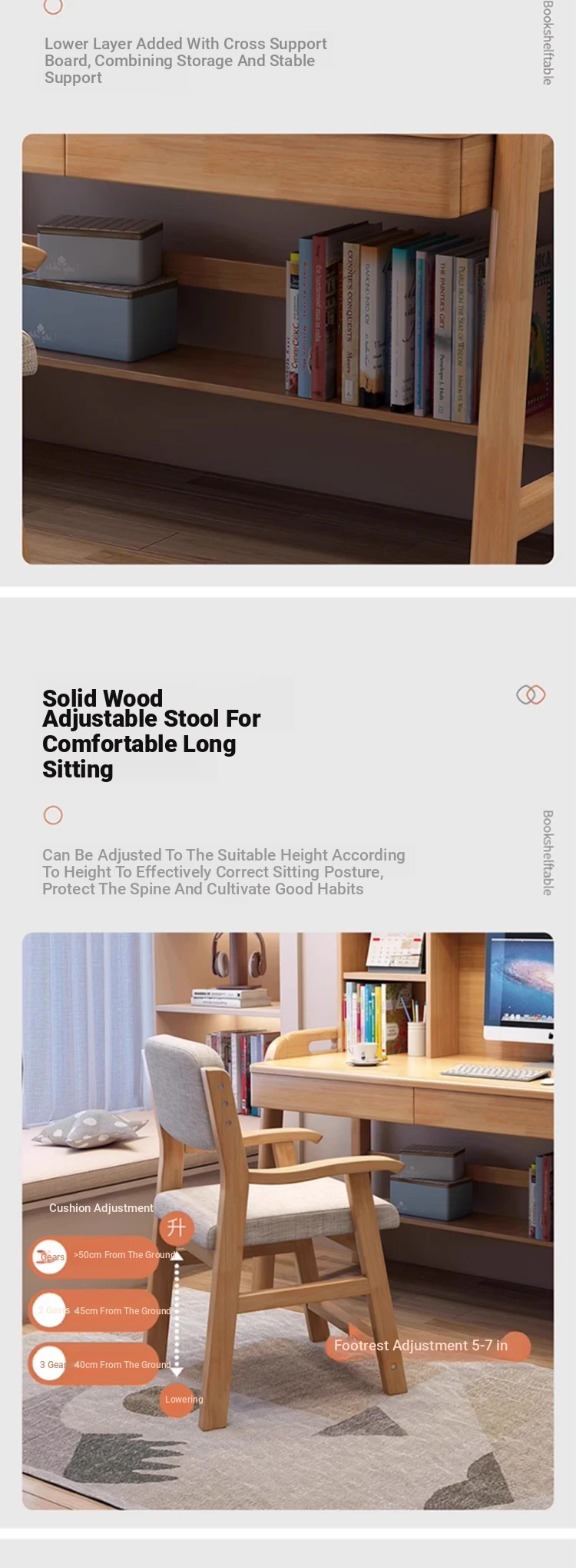 Elevate Your Child's Study Experience with the YUEMI Solid Wood Adjustable Desk – Perfect for Learning, Writing, and Working. Features a Storage Bookshelf and Ideal for Bedrooms and Offices.