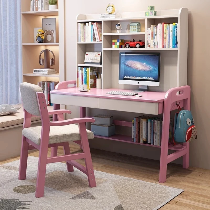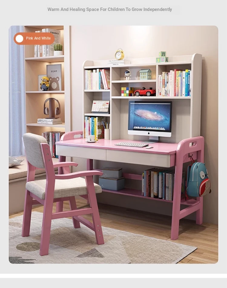 [Pink White] solid wood desk + chair lift([Pink White] solid wood desk + chair lift)