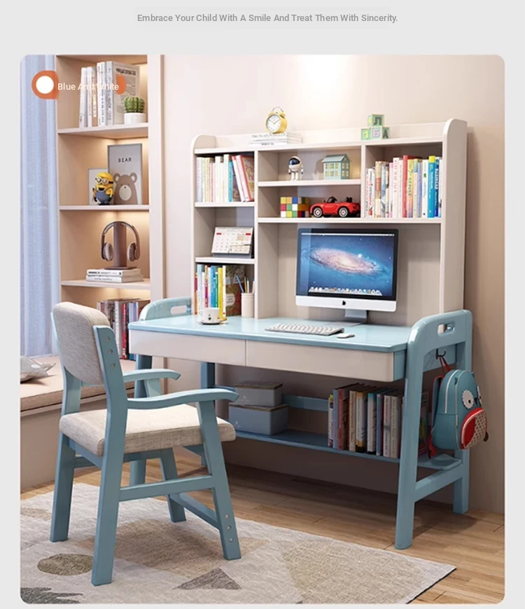 [Blue and White] solid wood desk + chair lift([Blue and White] solid wood desk + chair lift)