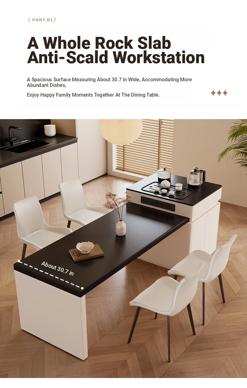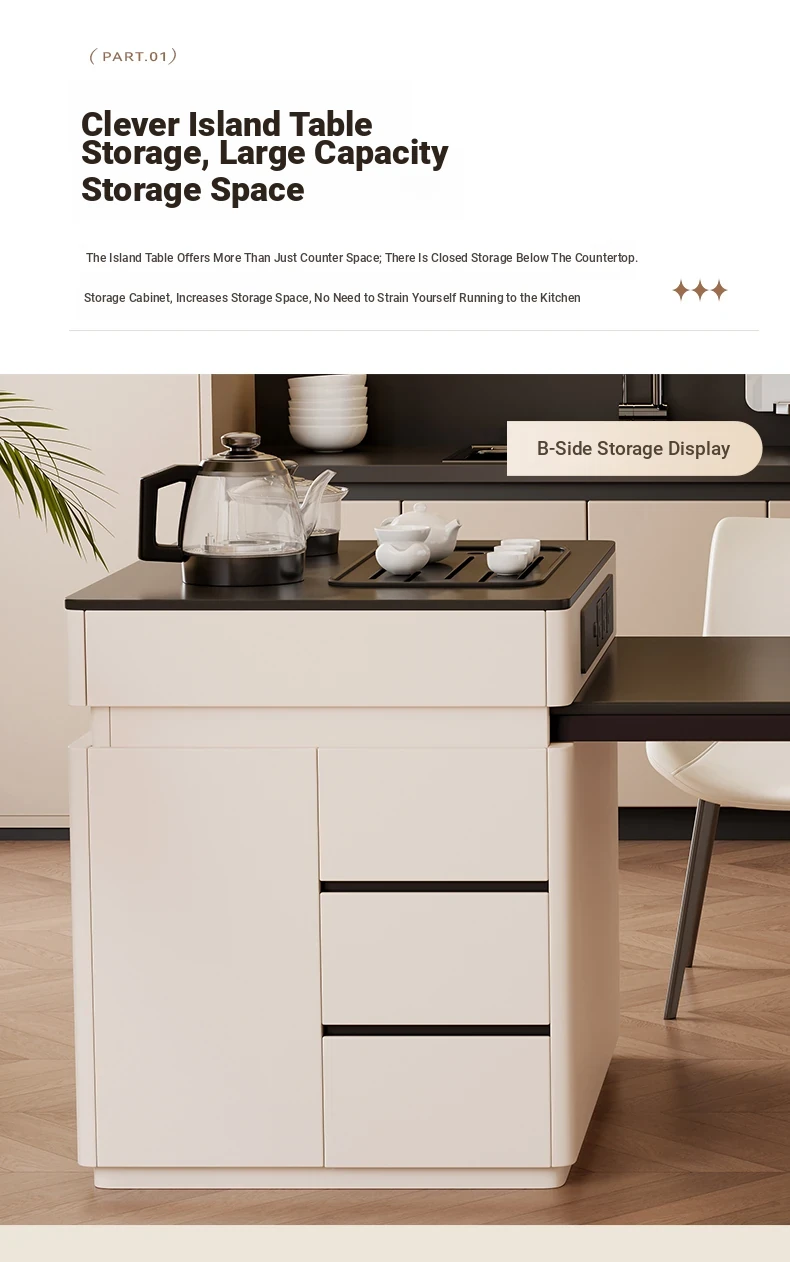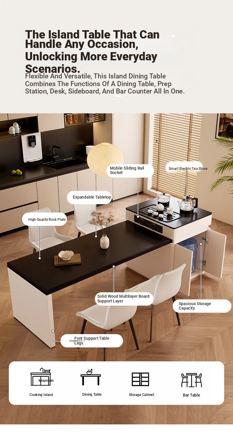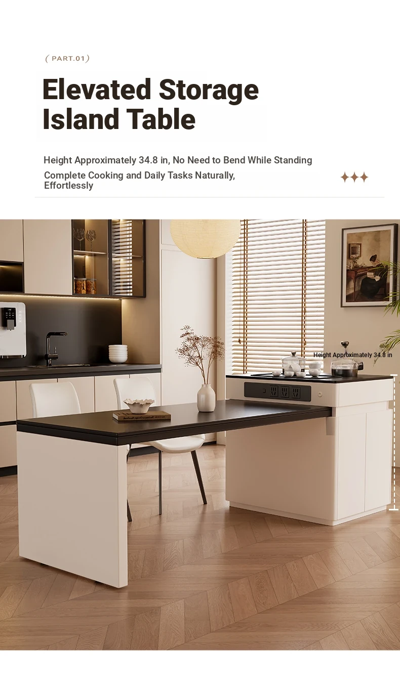 Elevate Your Space: Aile Jia Modern Expandable Kitchen Island Table - Perfect for Small Homes, Sleek Minimalist Design, Eligible for Government Subsidies