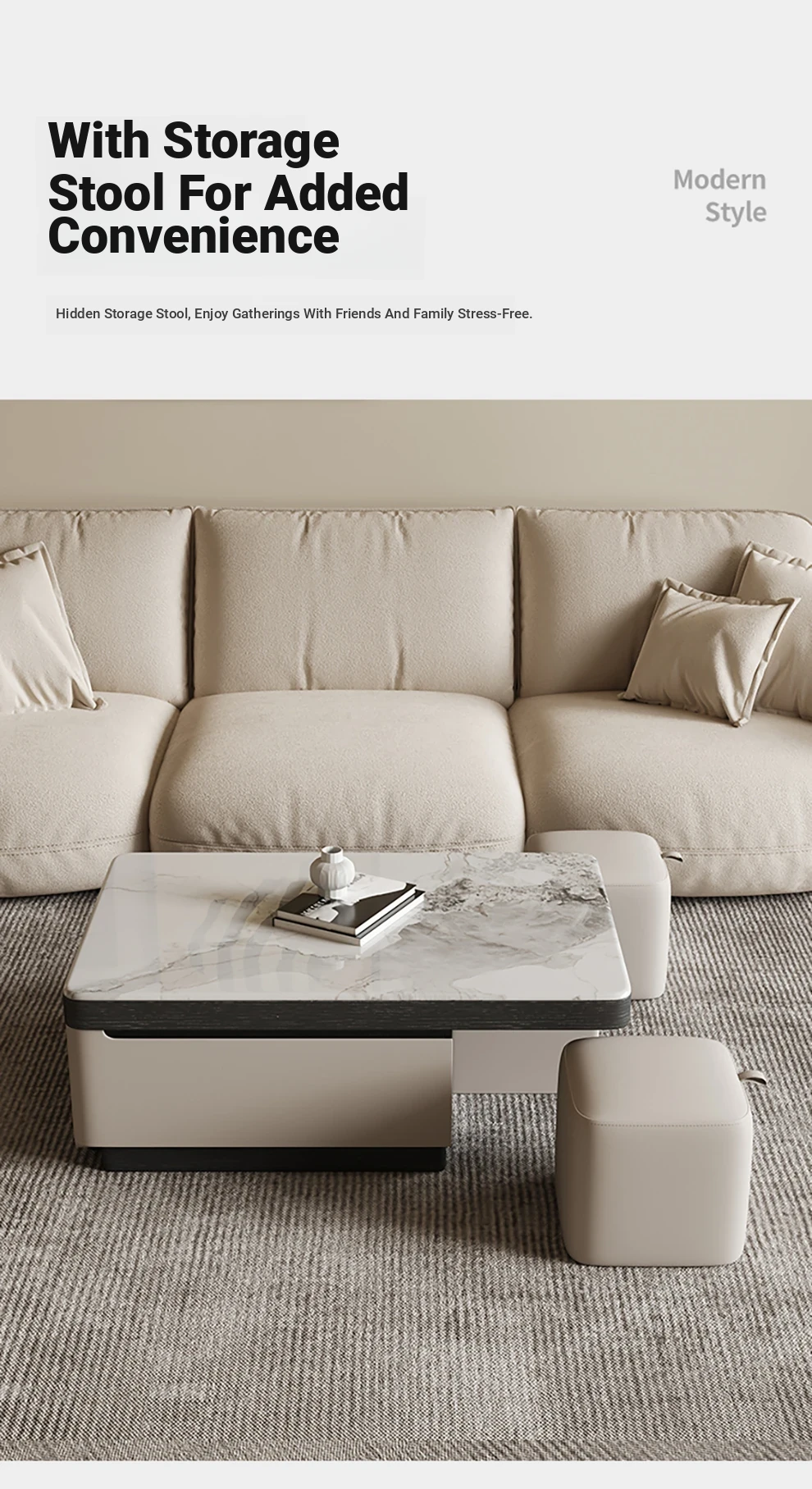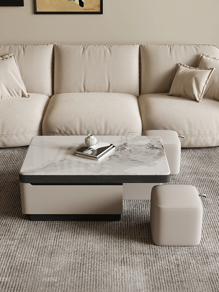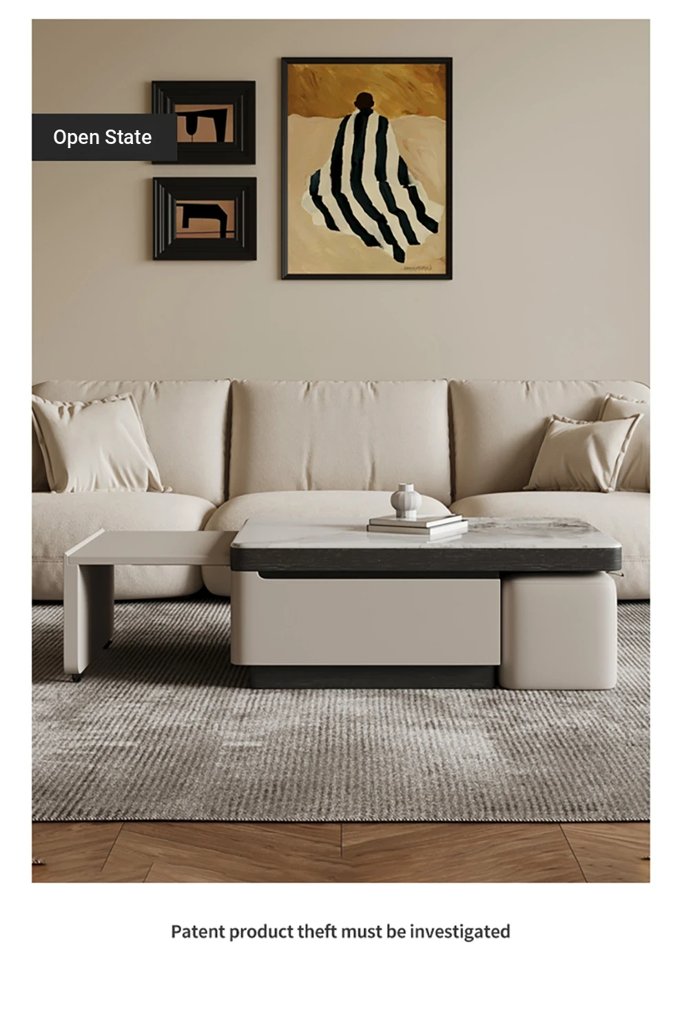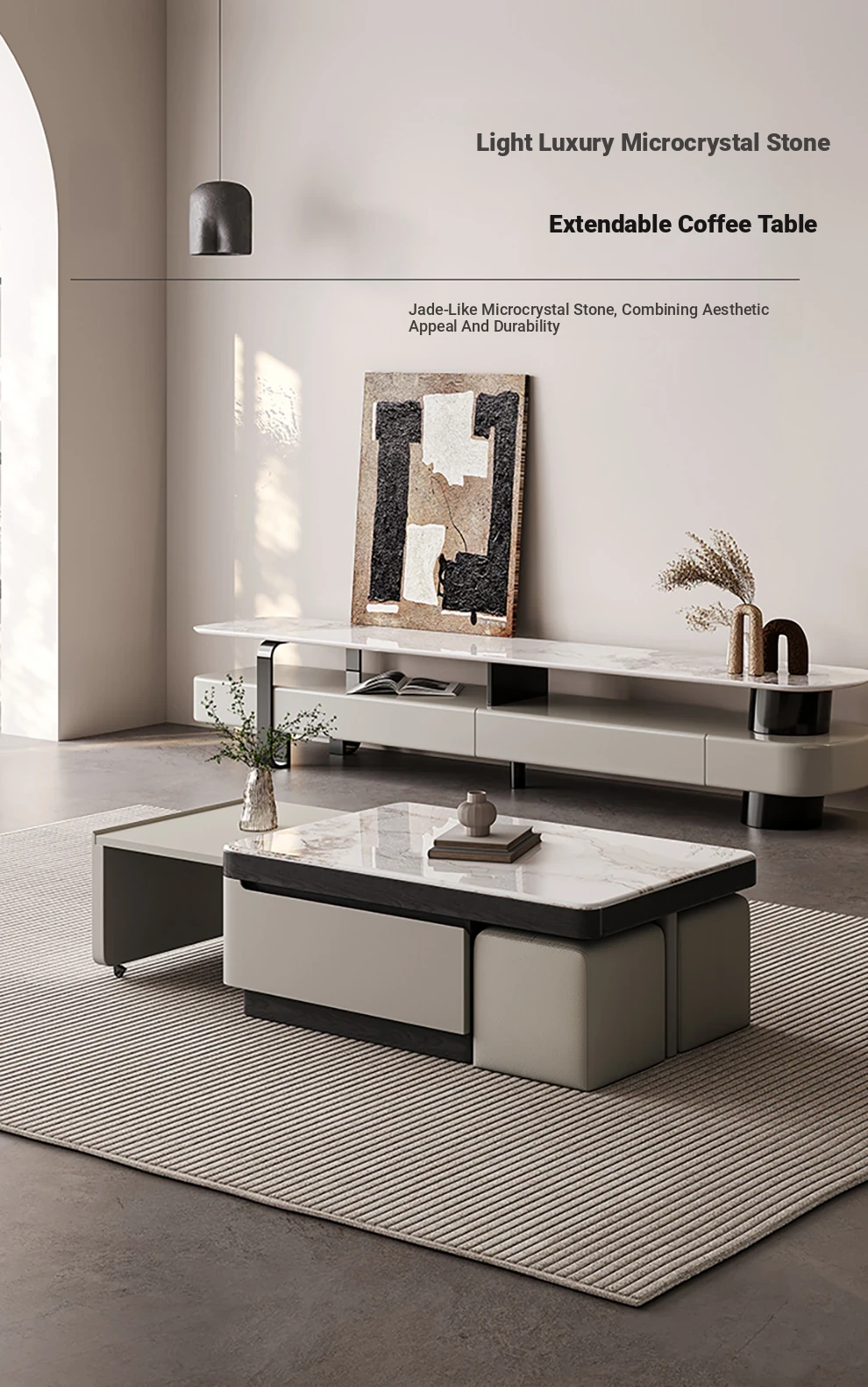 Naiqiu Italian Minimalist Extendable Microcrystal Coffee Table with Ottoman for Small Spaces - Modern and Creative Designer Piece for Home Use