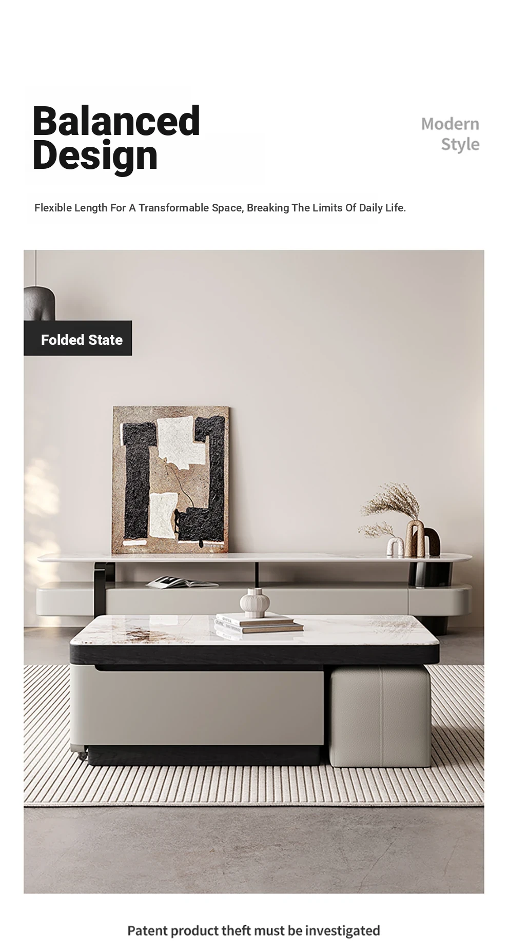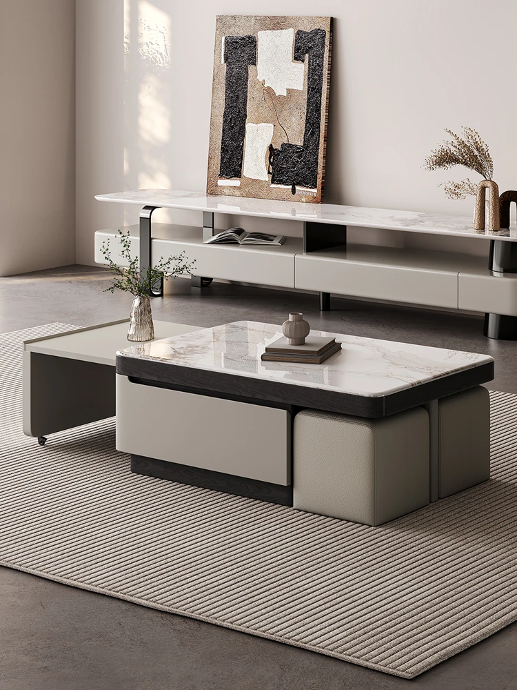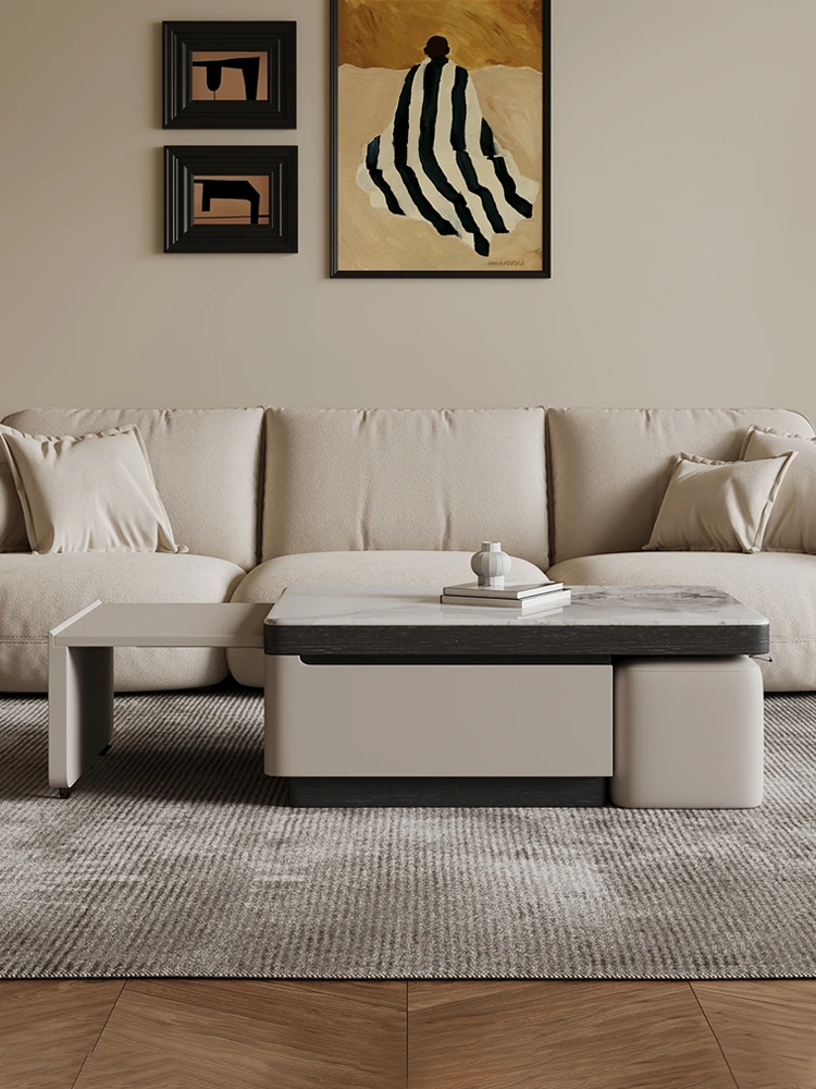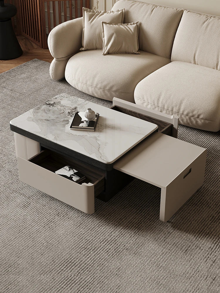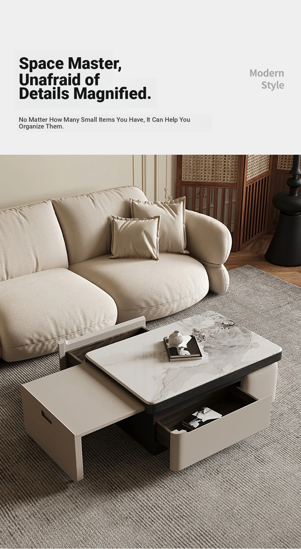 Naiqiu Italian Minimalist Extendable Microcrystal Coffee Table with Ottoman for Small Spaces - Modern and Creative Designer Piece for Home Use