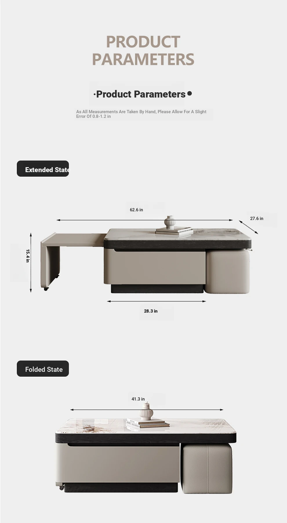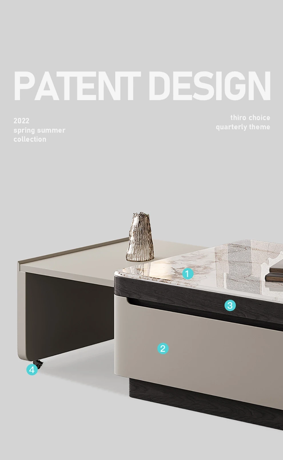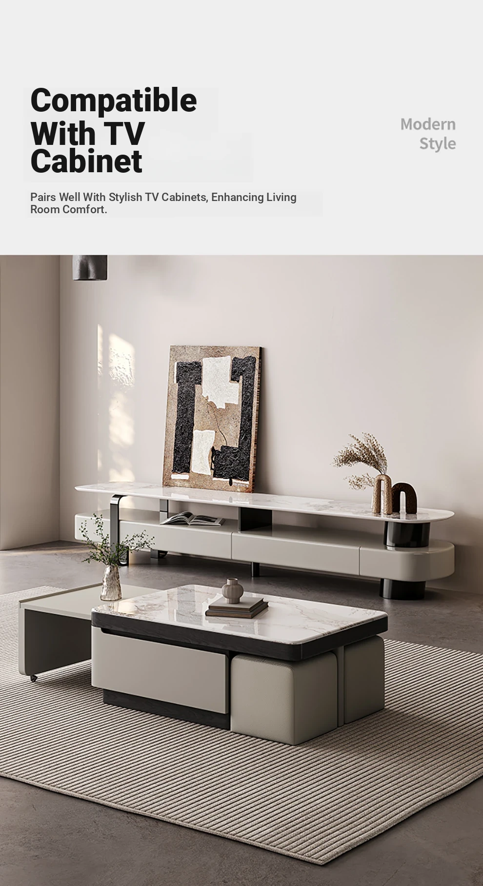 Naiqiu Italian Minimalist Extendable Microcrystal Coffee Table with Ottoman for Small Spaces - Modern and Creative Designer Piece for Home Use