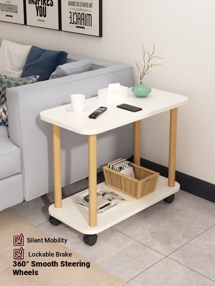 Versatile Side Table with Wheels - Stylish Mobile Tea Table and Storage Rack for Sofa, Mini Cart, Easy-to-Use Home Living Room Side Table