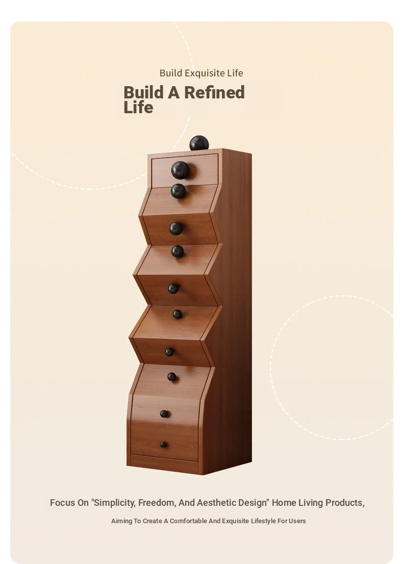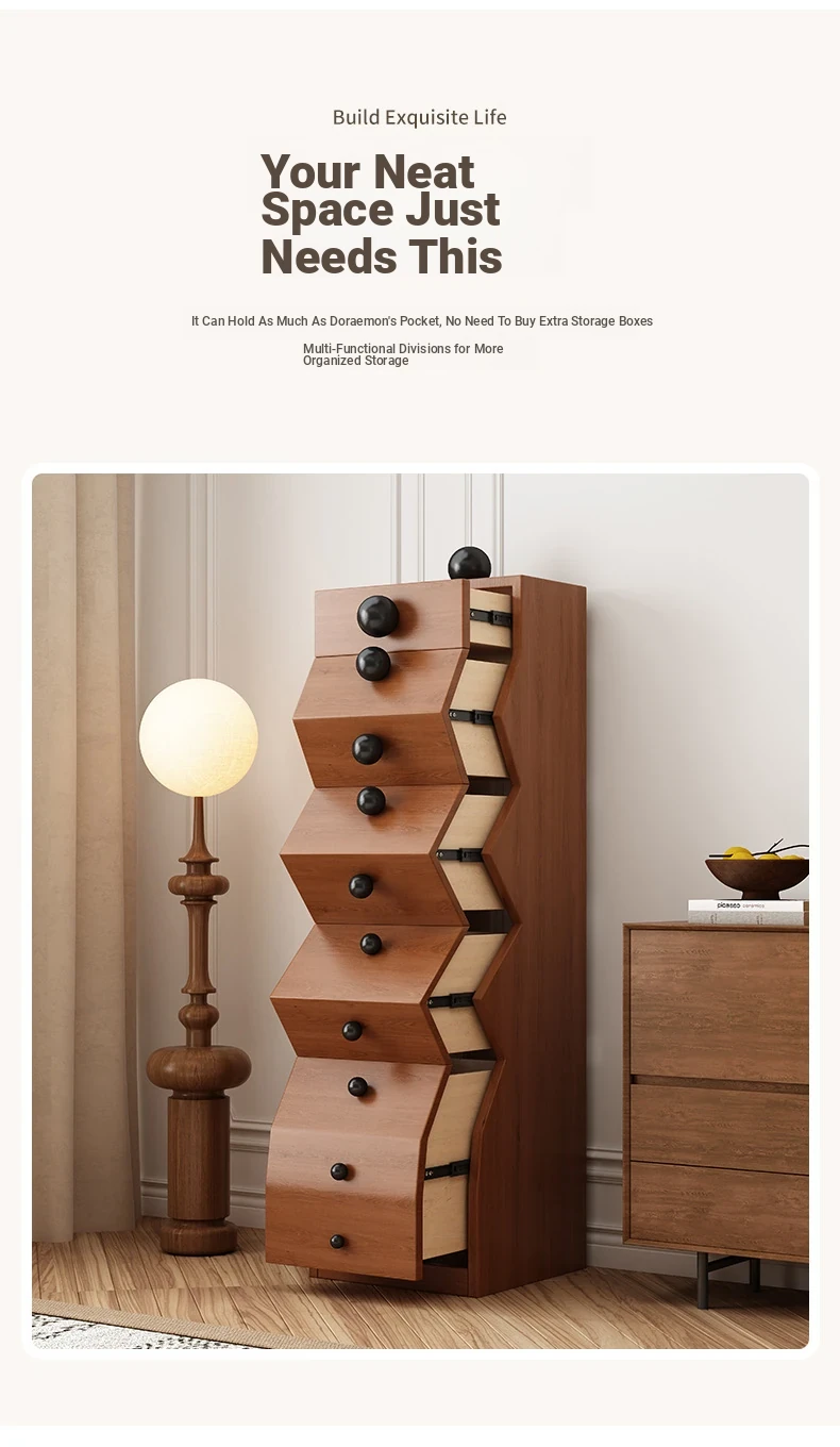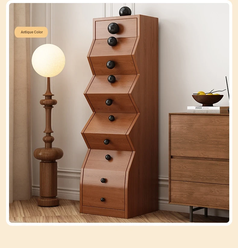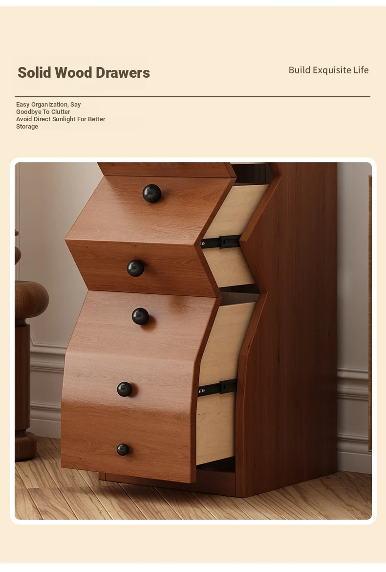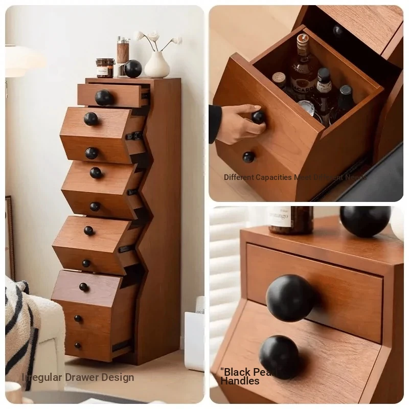 Elegant All-Wood French Vintage Style 5-Drawer Cabinet – Unique Irregular Design, Perfect for Entryways and Creative Living Room Storage Solutions