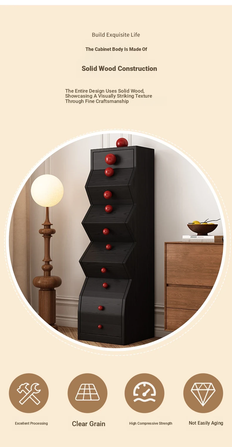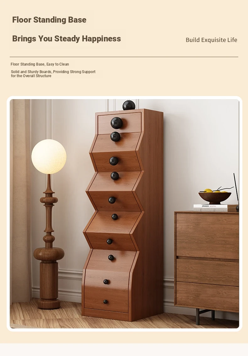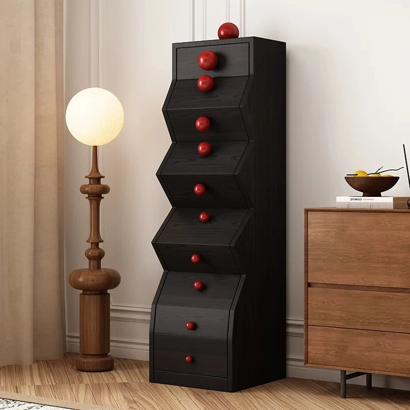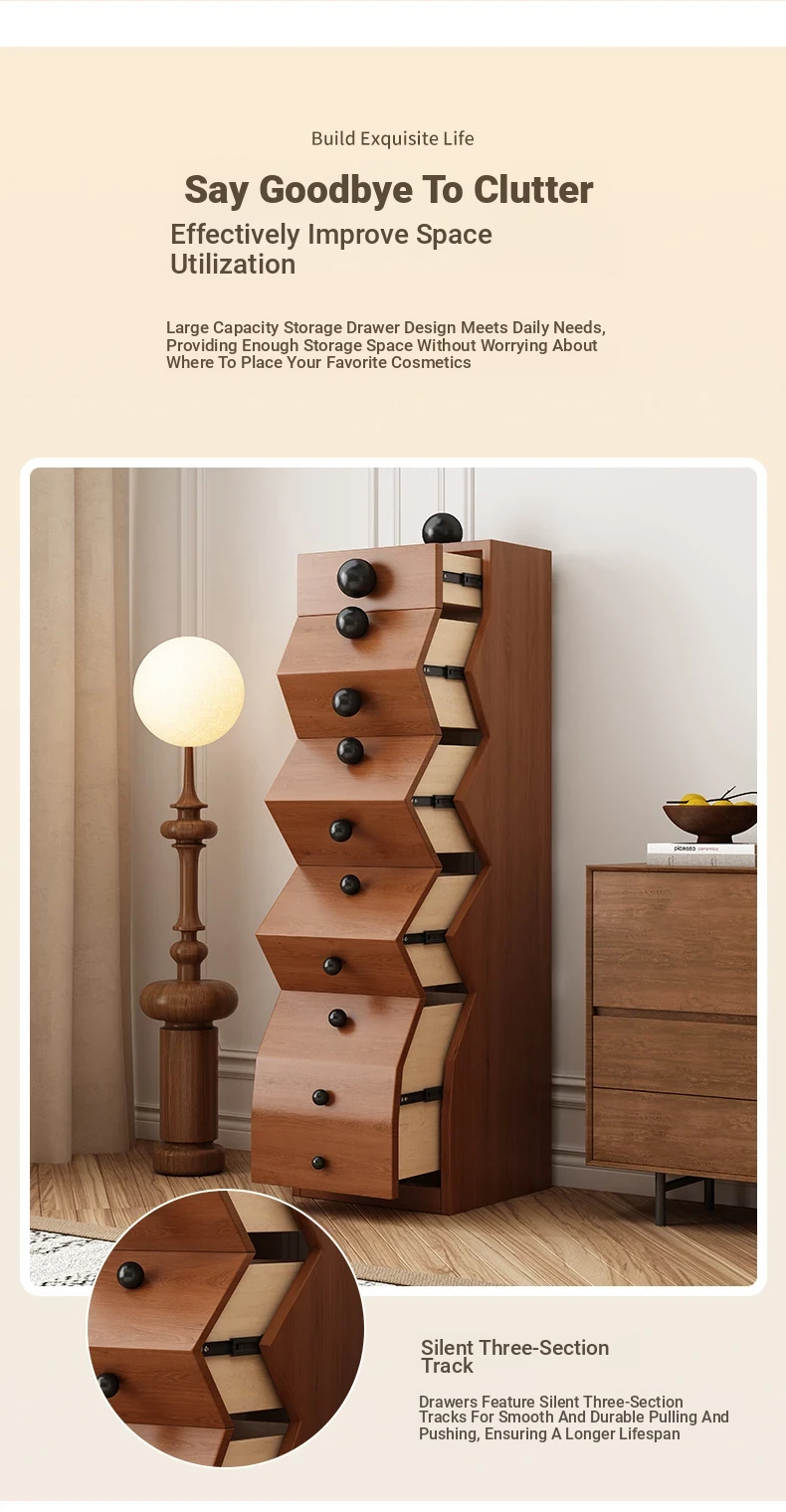Elegant All-Wood French Vintage Style 5-Drawer Cabinet – Unique Irregular Design, Perfect for Entryways and Creative Living Room Storage Solutions
