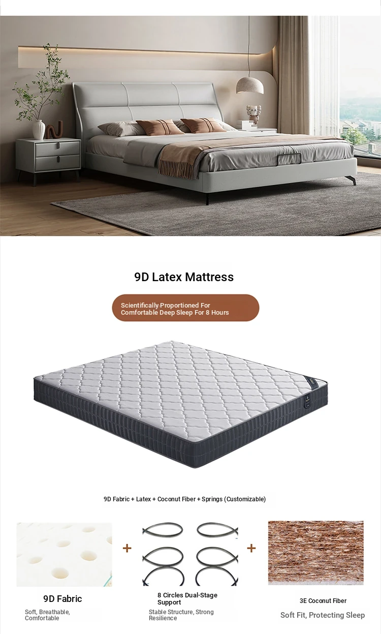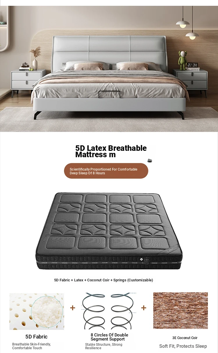 Bed + 5D latex Breathable Mattress [Napa leather + full pine frame + silent bed board]]