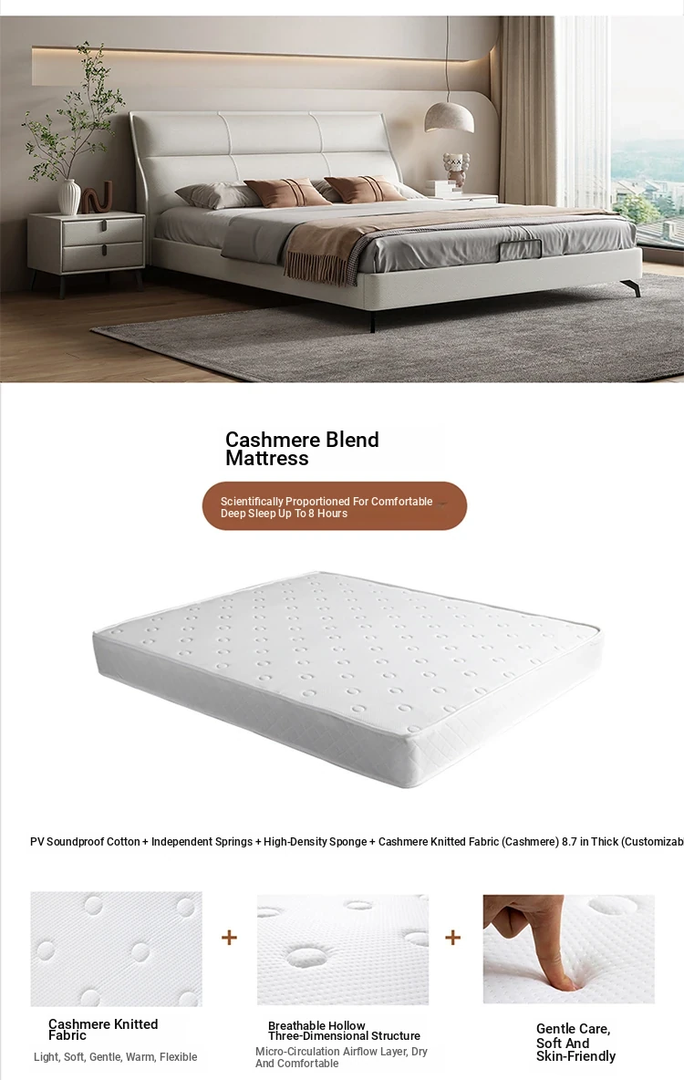 Bed + cashmere mattress [Napa leather + full pine frame + silent bed board]]