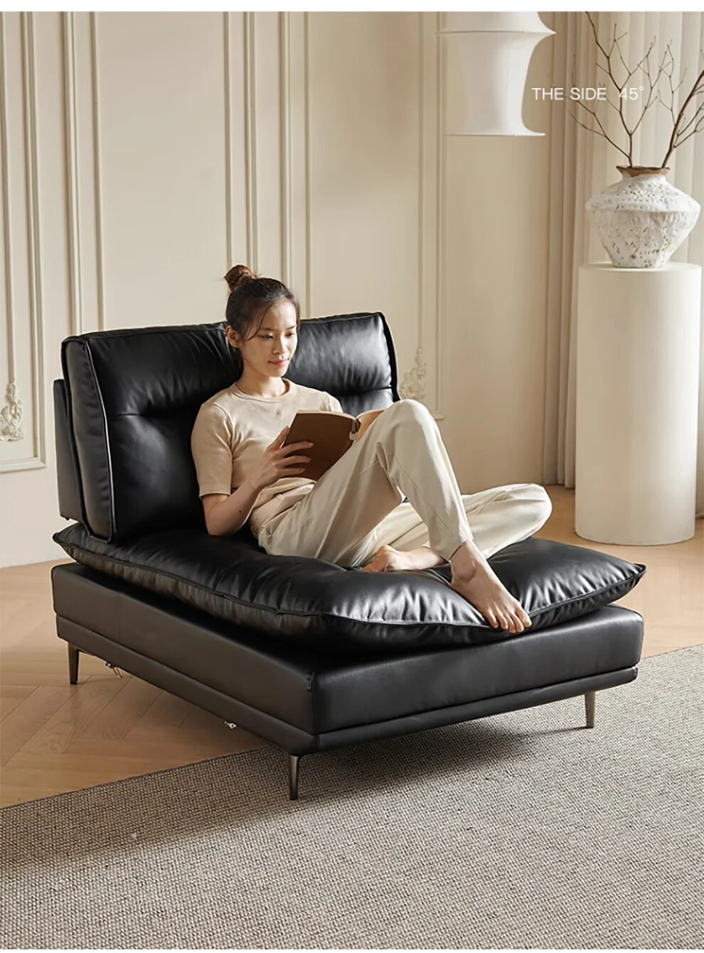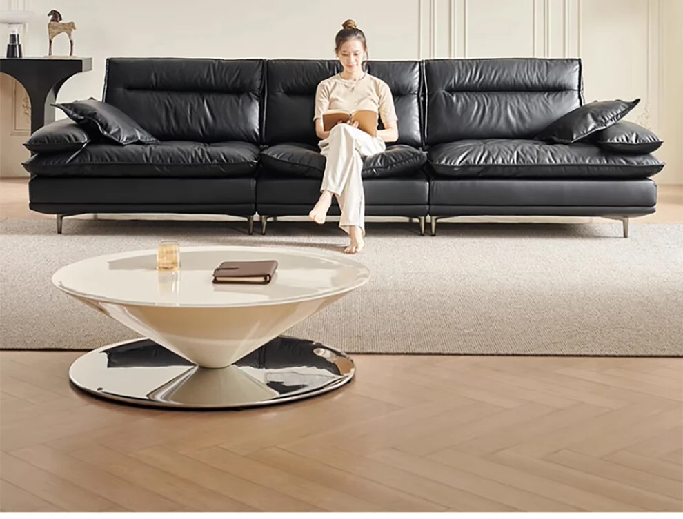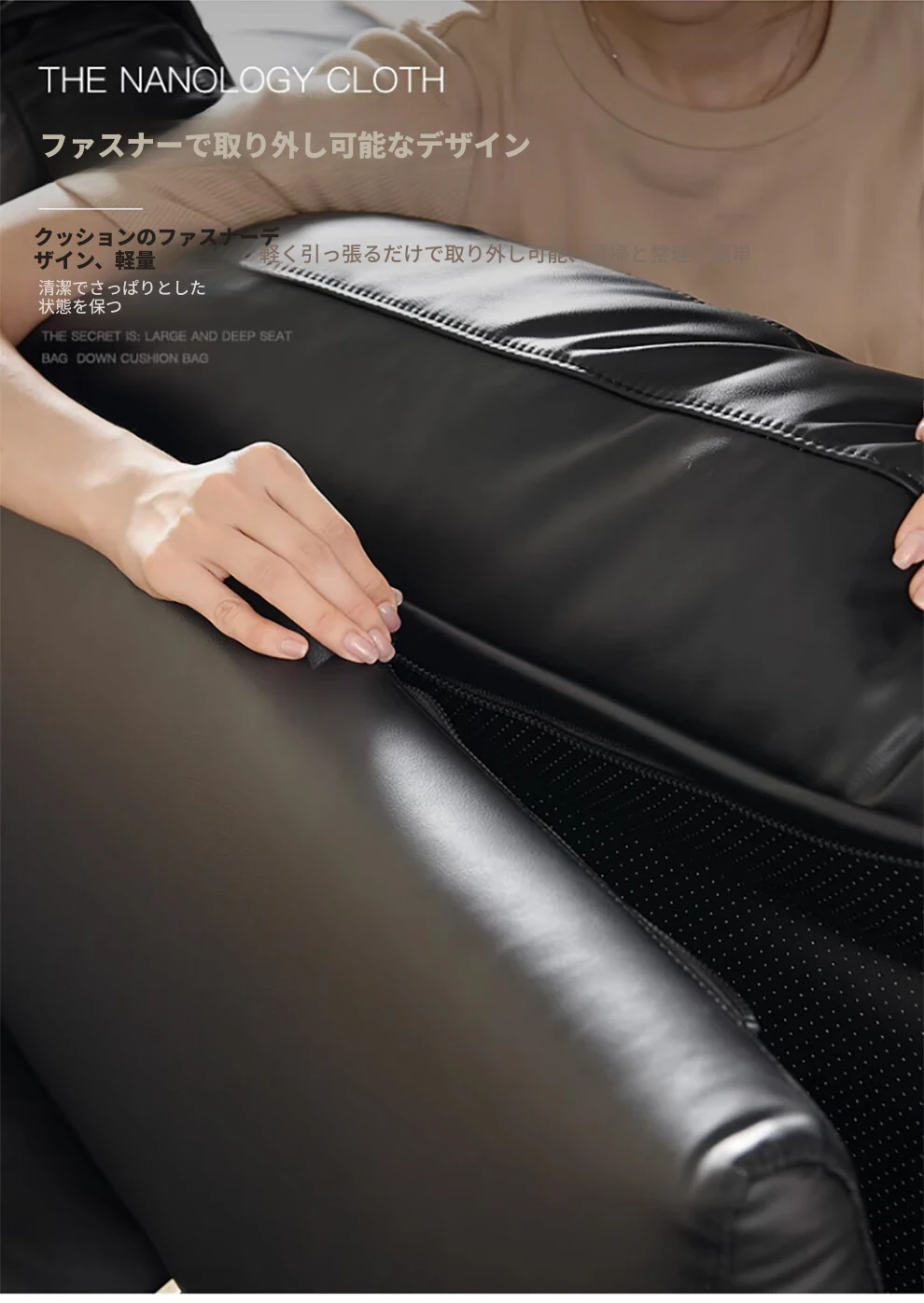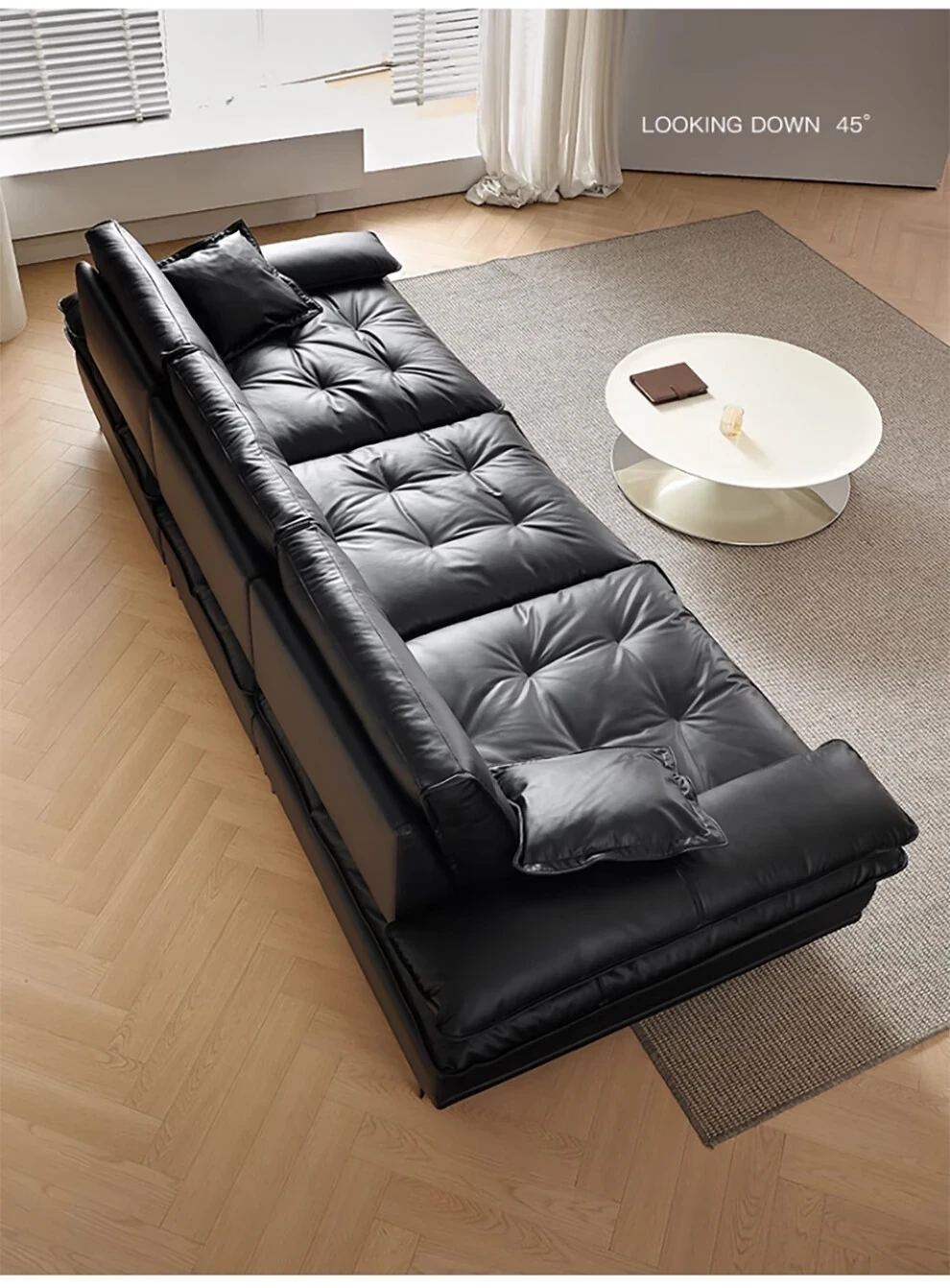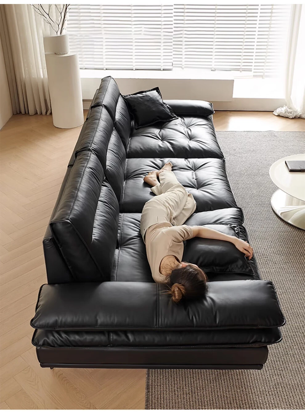 当店特选!深い座り心地と広々とした空間を実現する、移動可能な背もたれ付きの本革ソファ。洗練されたイタリアンスタイルで、リビングに上質な贅沢をプラス。ブラックレザーの美しさを体感してください!
