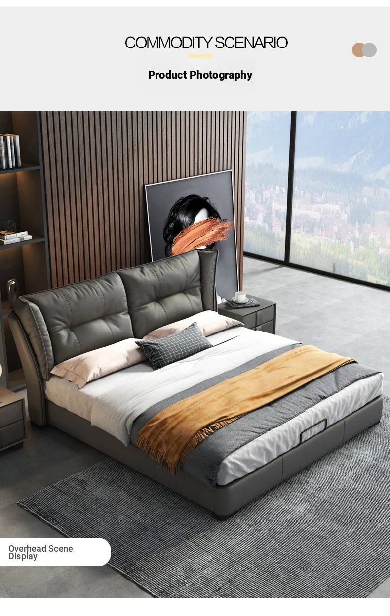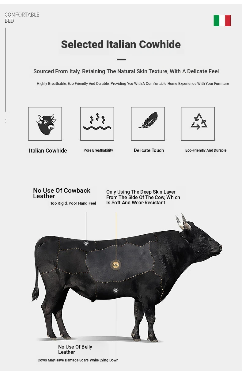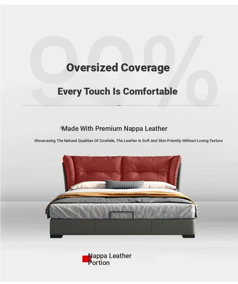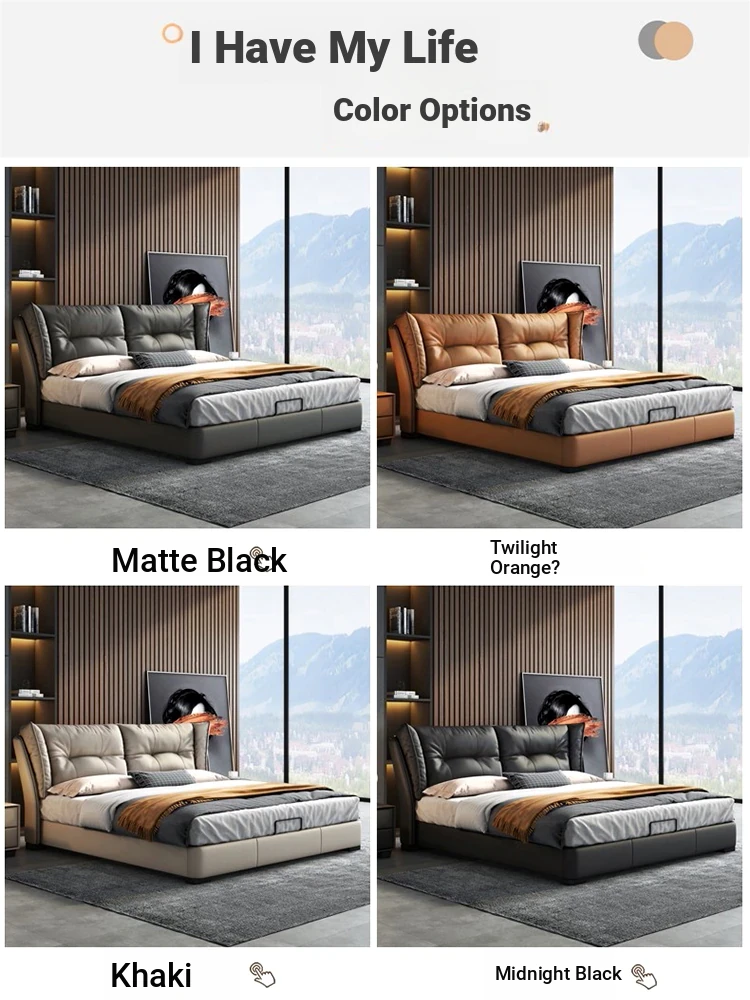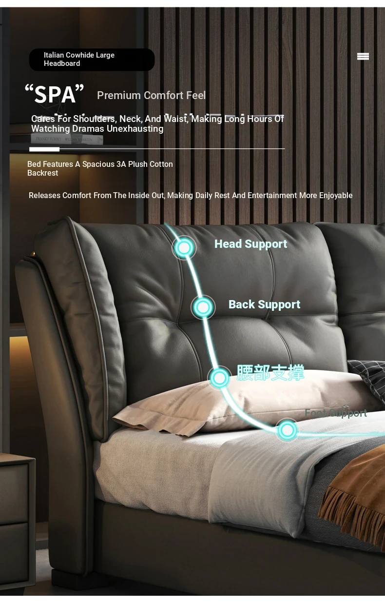 Minimalist Italian Genuine Leather Bed - Modern Luxury High-Storage Double Bed for Small Bedrooms - Perfect for Newlyweds and Chic Home Decor.
