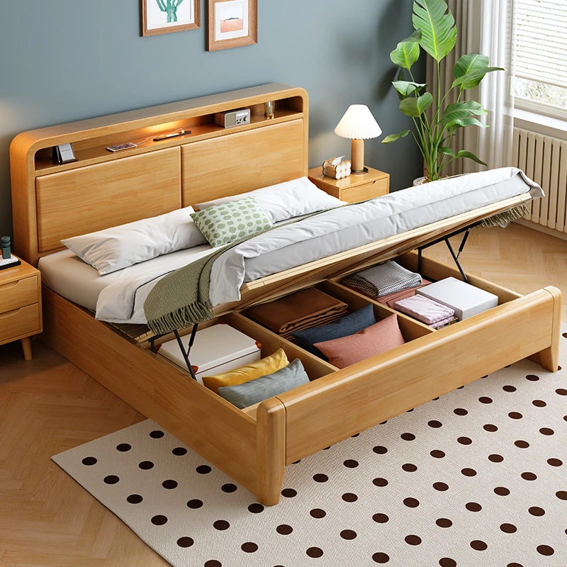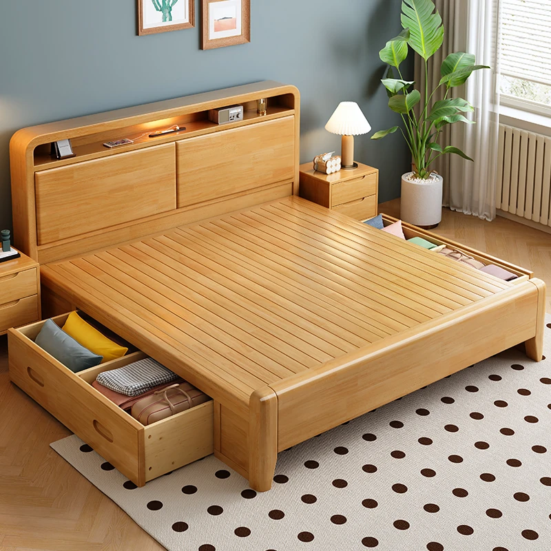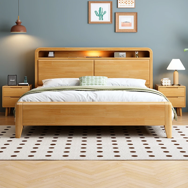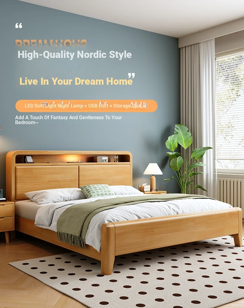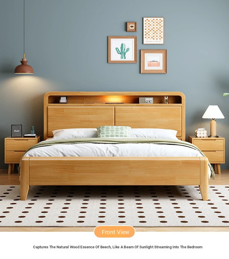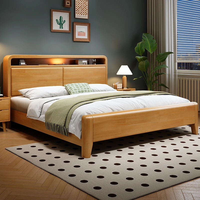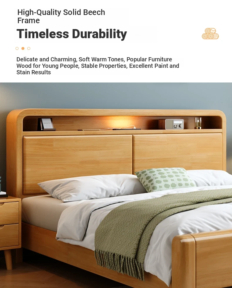 Nordic-Style Solid Wood Bed - Modern Minimalist Beech Bed for Bedroom, 1.5m & 1.8m Sizes, Elegant Double Storage Bed for Master Room Furniture
