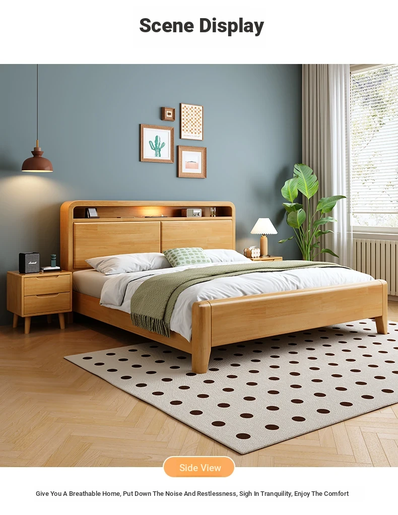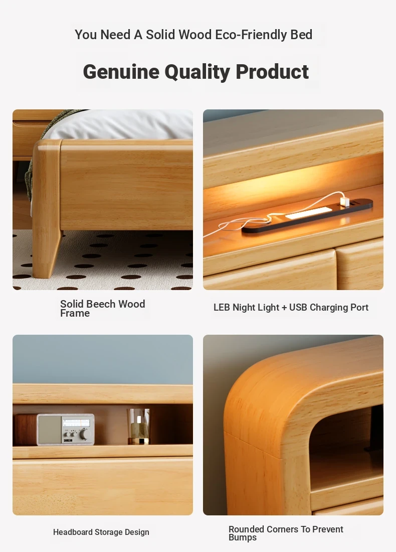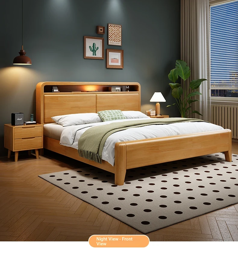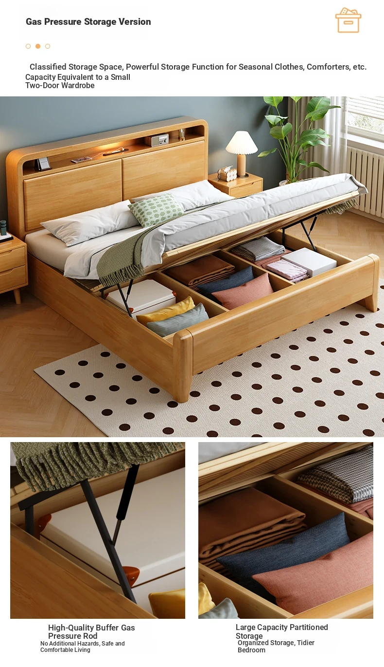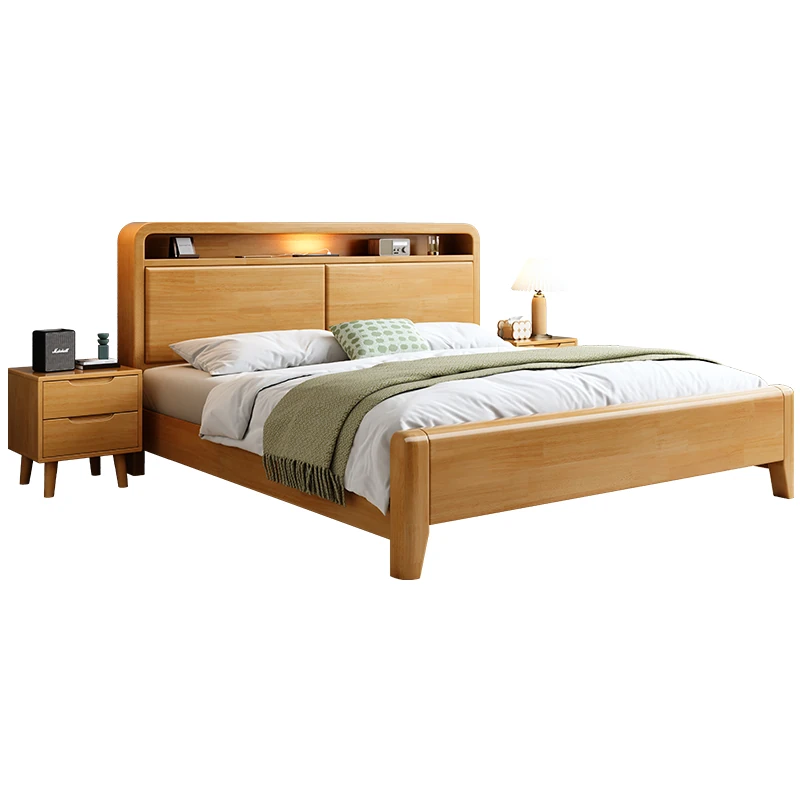 Nordic-Style Solid Wood Bed - Modern Minimalist Beech Bed for Bedroom, 1.5m & 1.8m Sizes, Elegant Double Storage Bed for Master Room Furniture