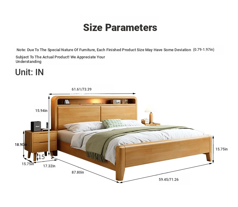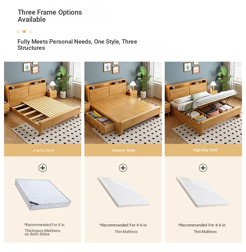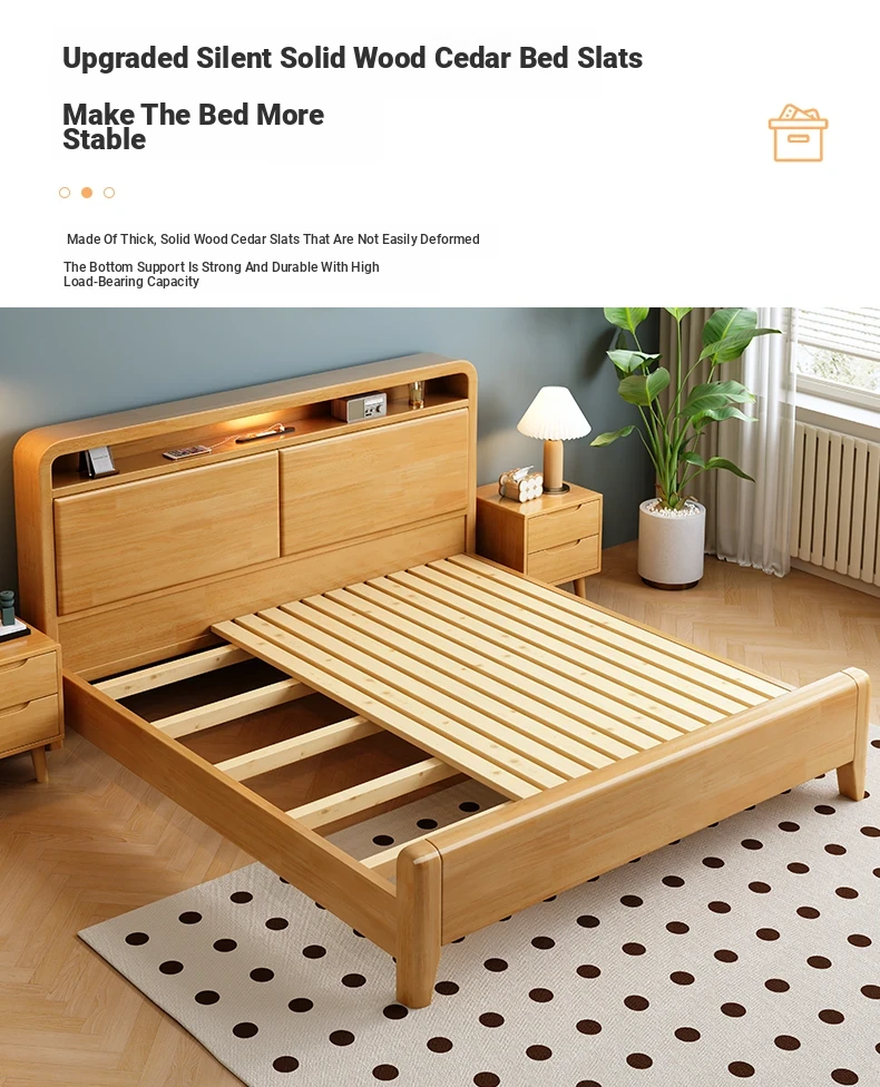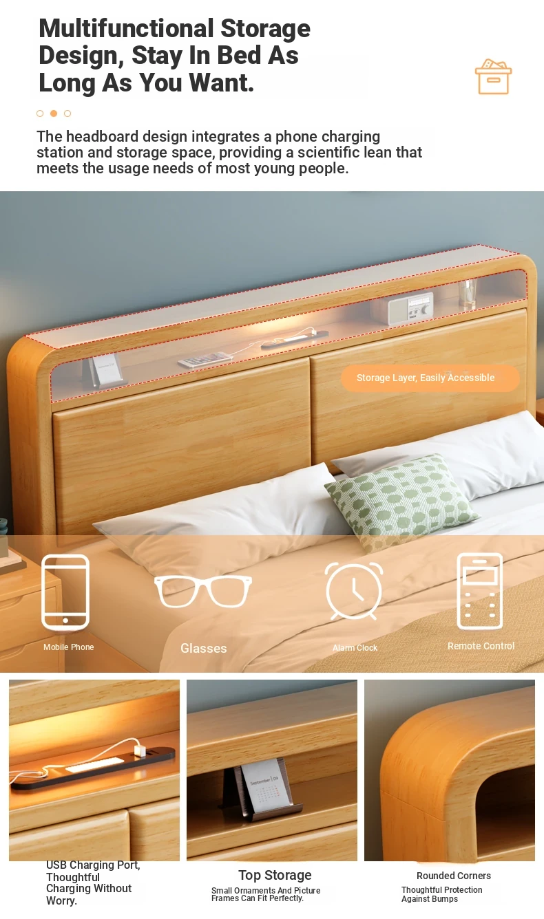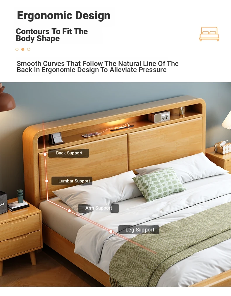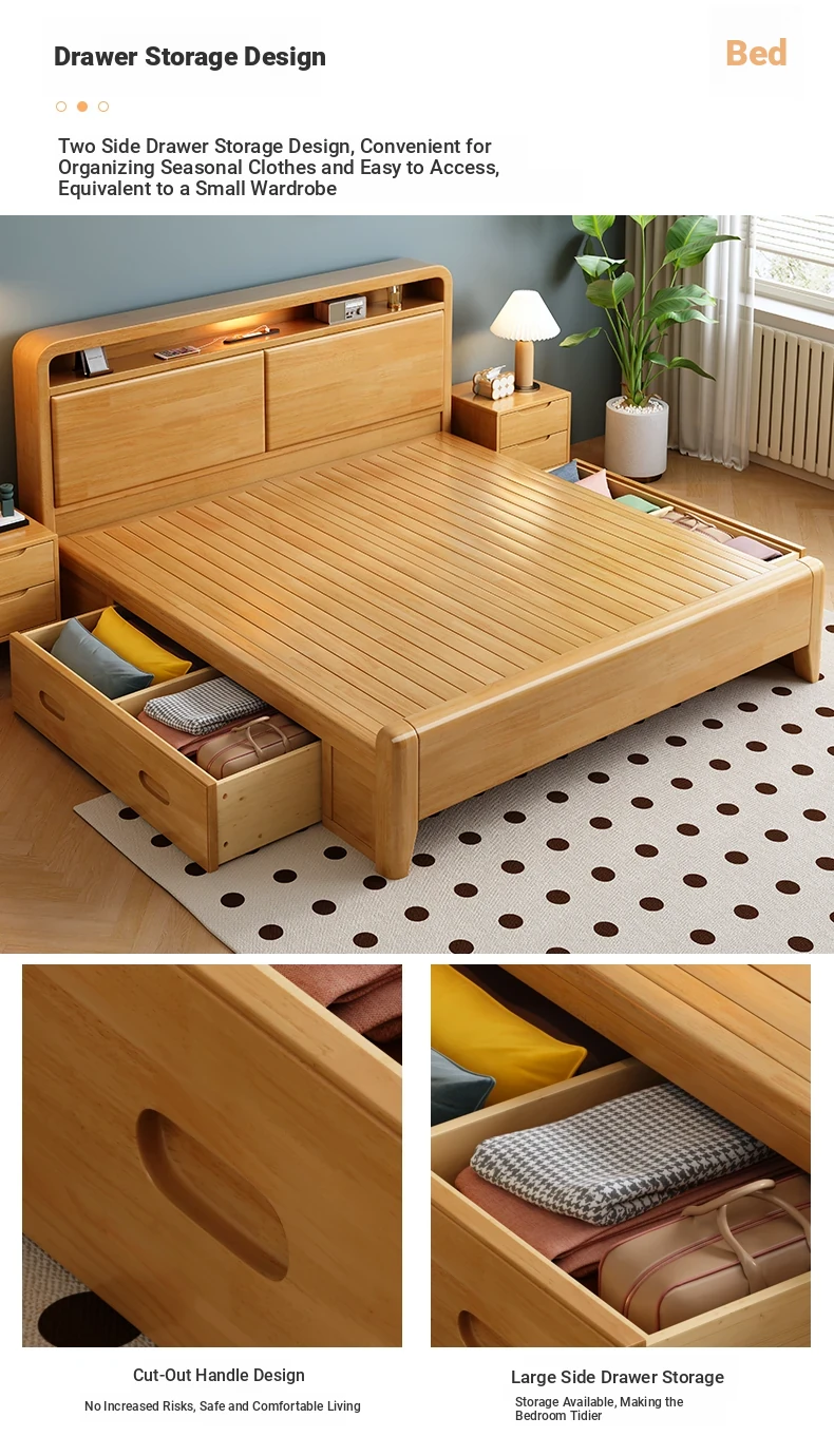 Nordic-Style Solid Wood Bed - Modern Minimalist Beech Bed for Bedroom, 1.5m & 1.8m Sizes, Elegant Double Storage Bed for Master Room Furniture