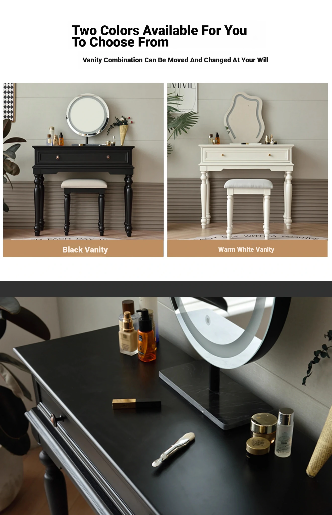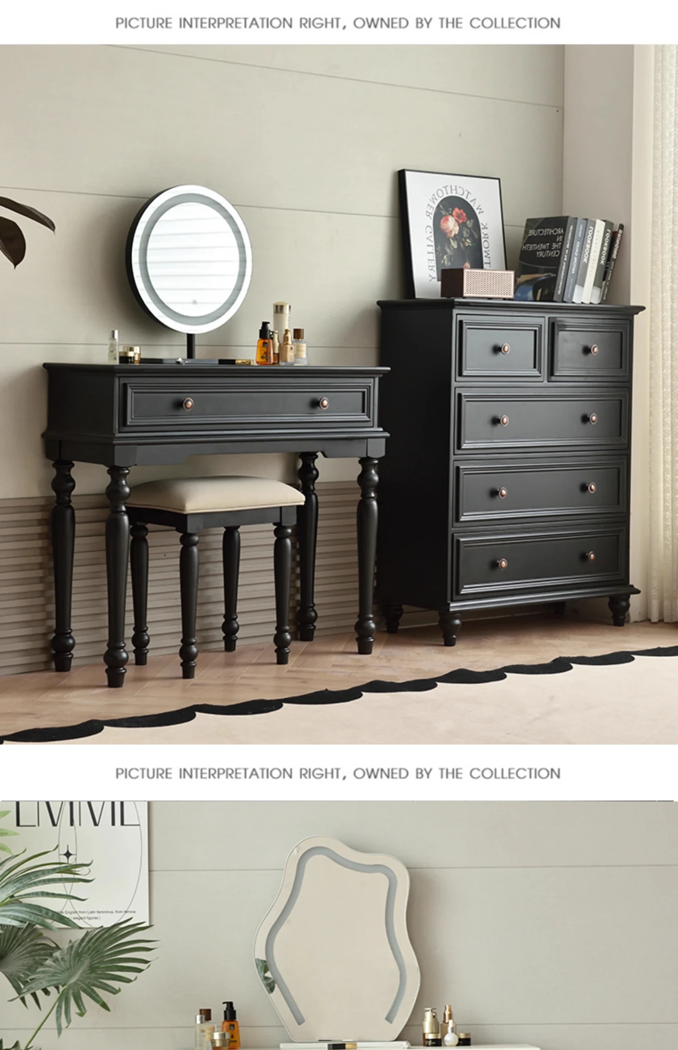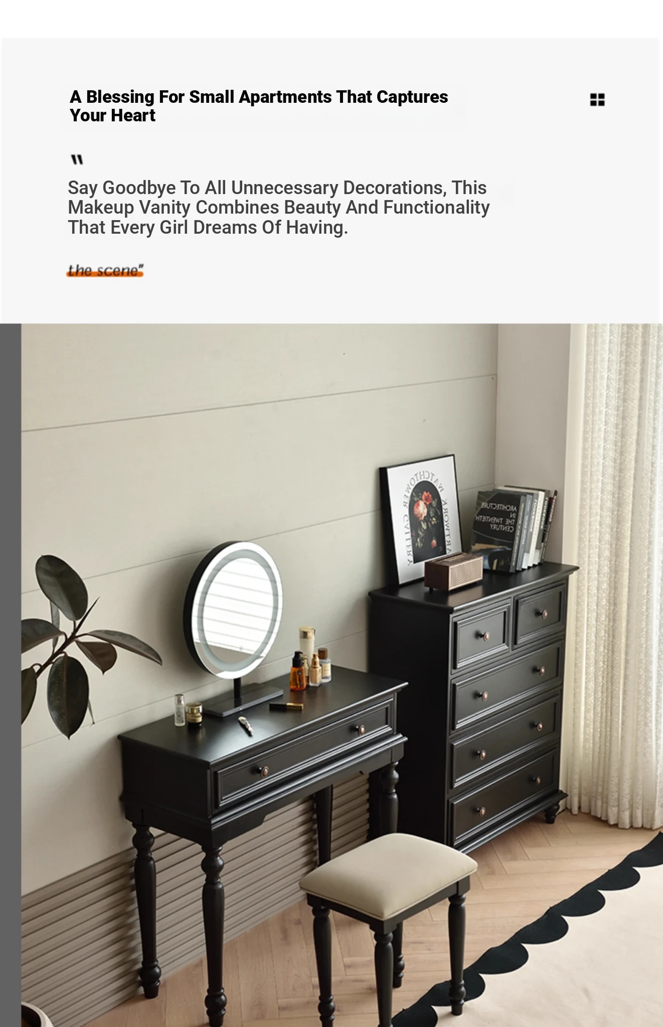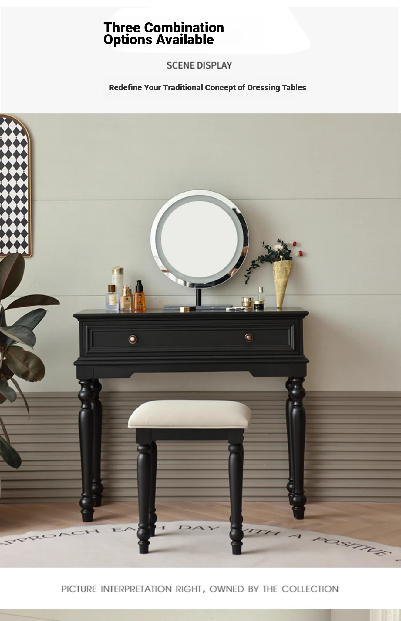 サンパリオ アメリカンヴィンテージ 木製 化粧台 コンパクト サイズ ブラック フレンチスタイル 高級収納 一体型キャビネット で、おしゃれな寝室を演出!あなたの美を引き立てるアイテムです。