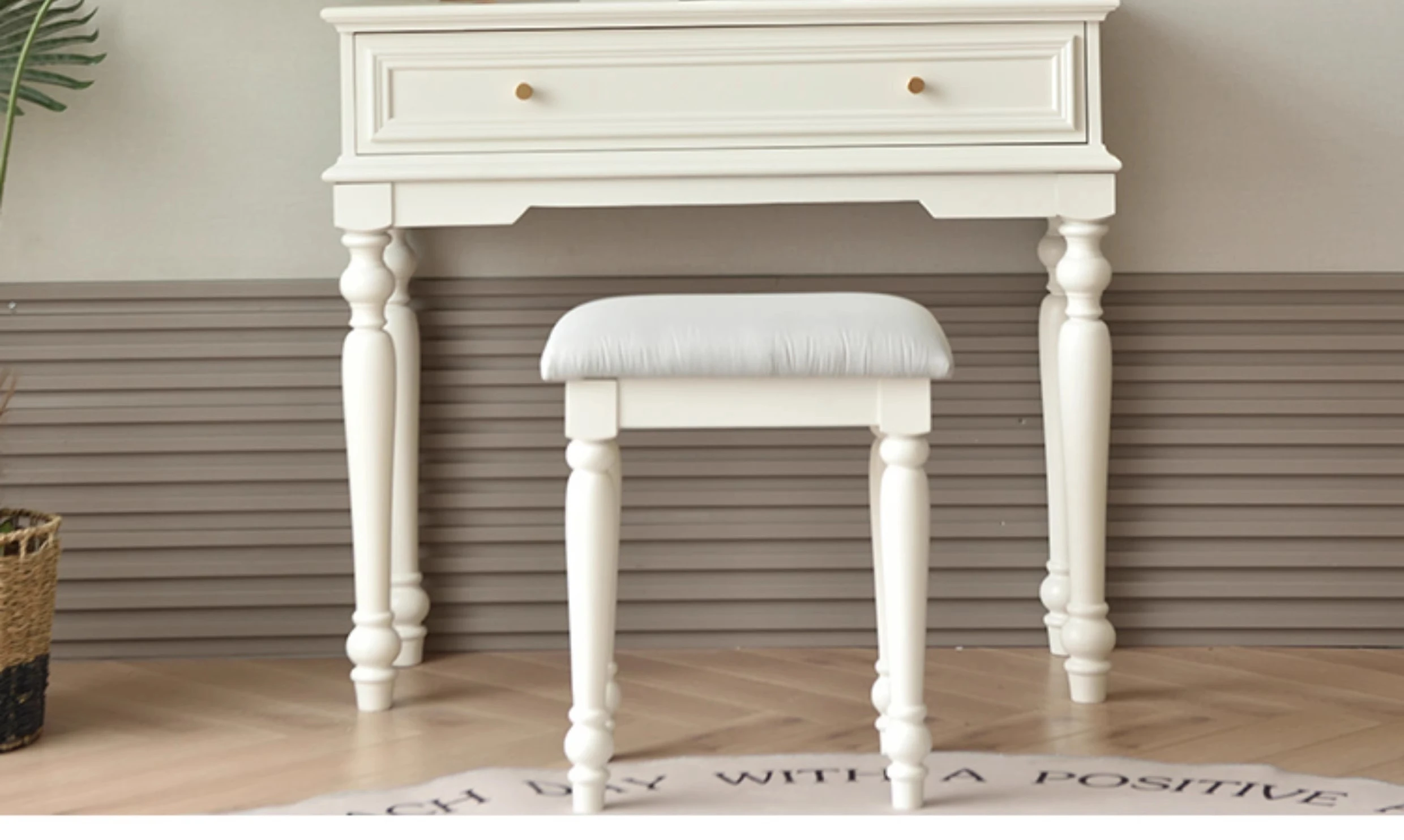 無垢材 - コスメティックテーブル&スツール【暖かい白】 送料無料