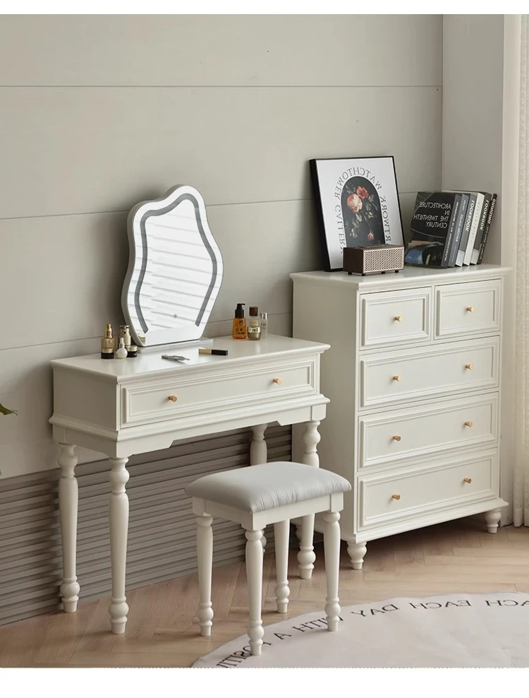 無垢材 - 5段チェスト&ドレッサー&スツール&ミラー【ウォームホワイト】無料配達サービス