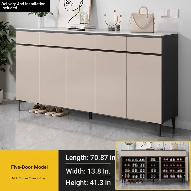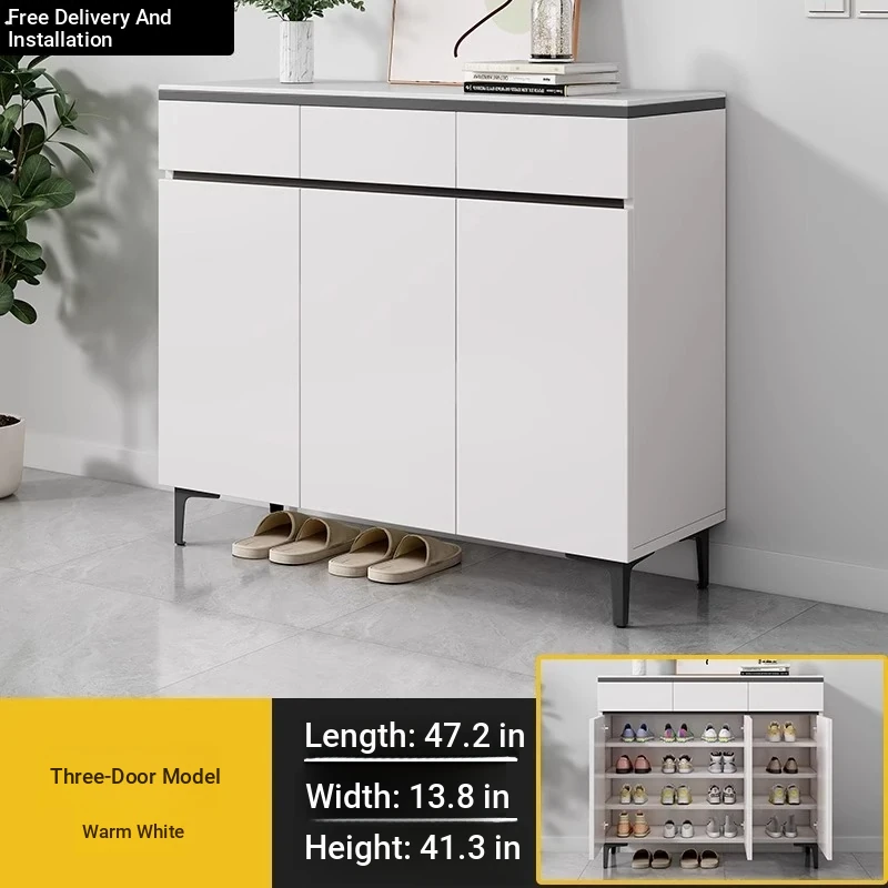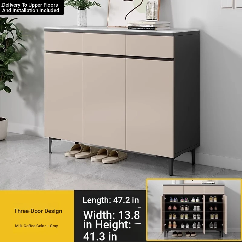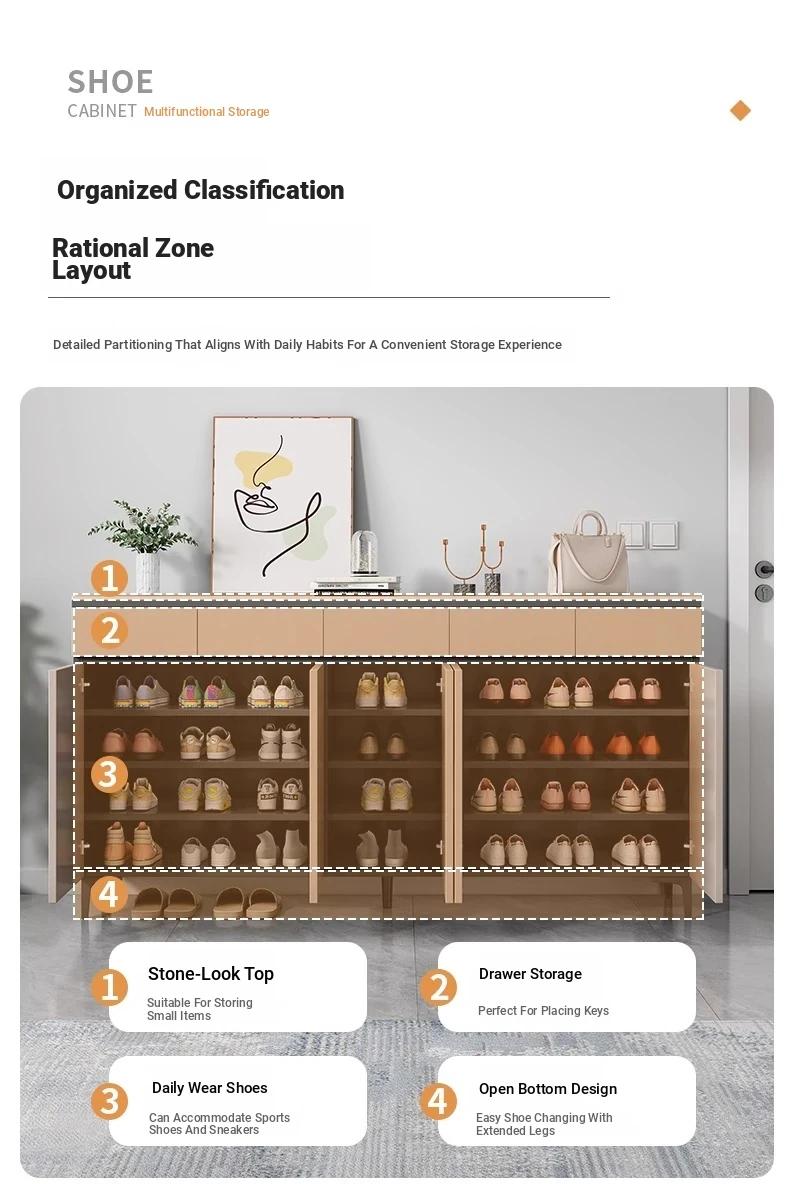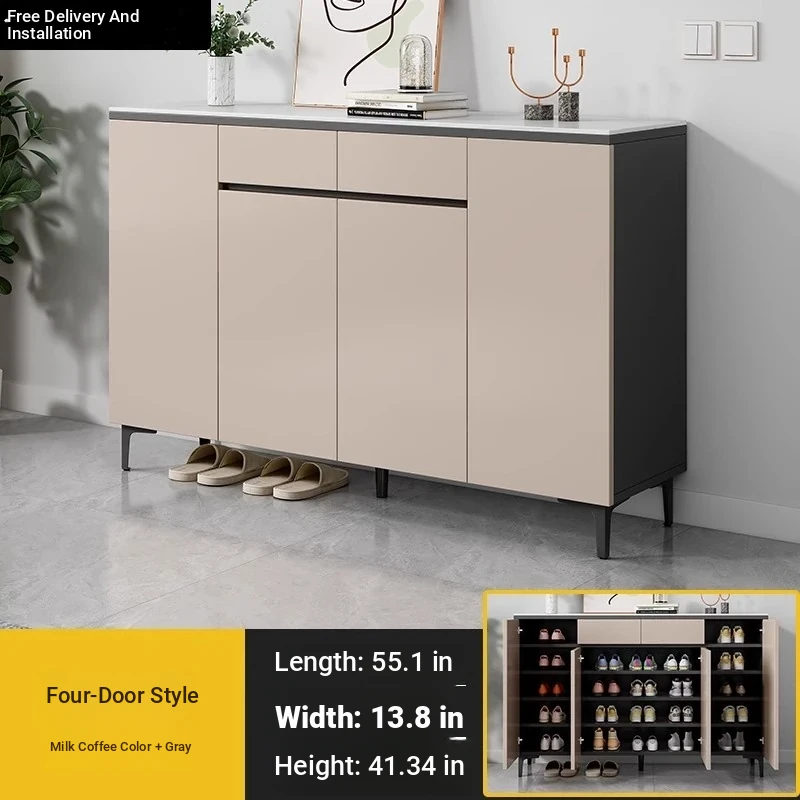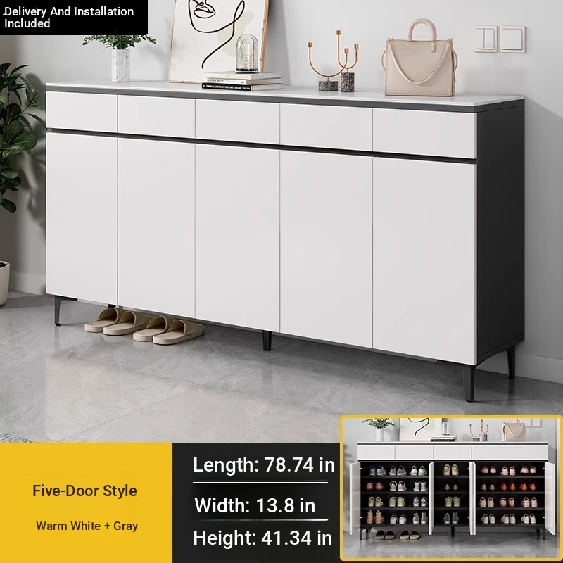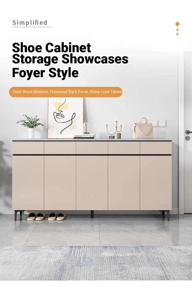 豪華な無垢材のロックボード靴収納キャビネット - モダンでシンプルなデザイン、お家の入り口に最適!厚みのある構造で丈夫、リビングの壁際に置いてスッキリ整理整頓。収納力抜群で、おしゃれな玄関を演出します!