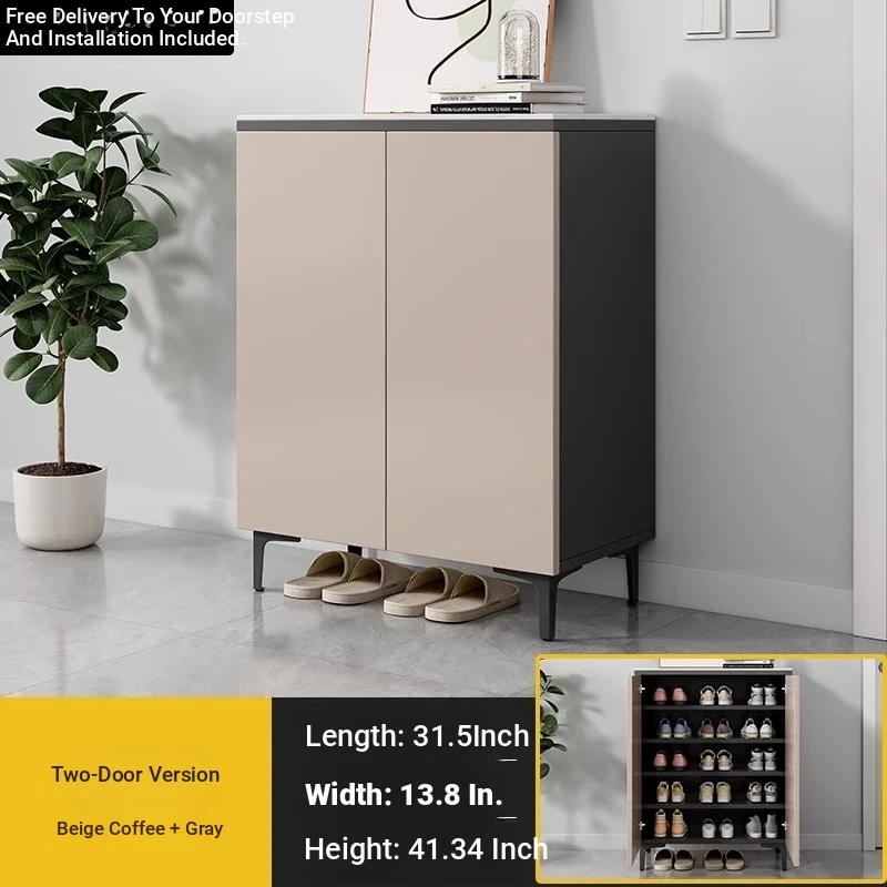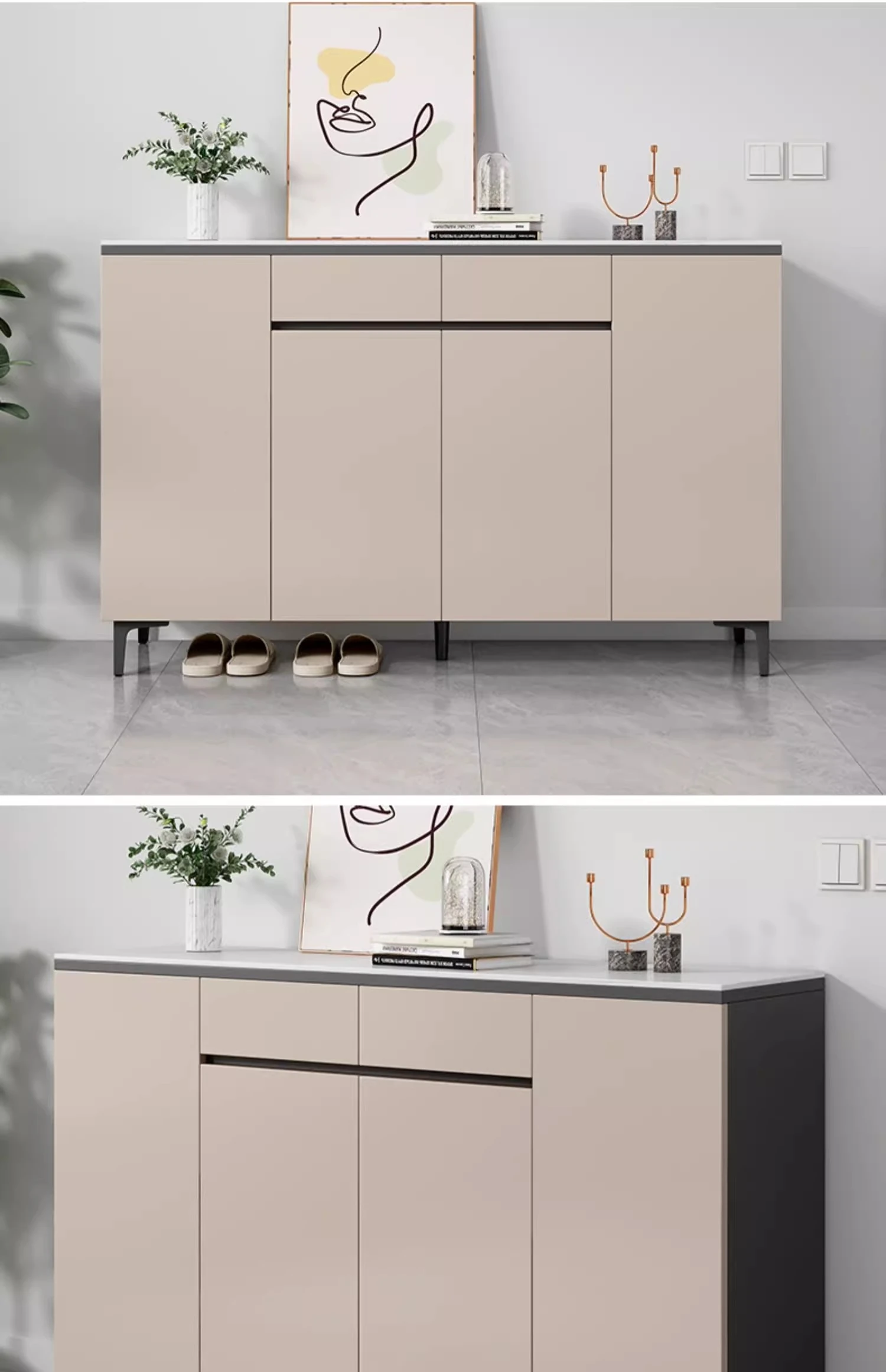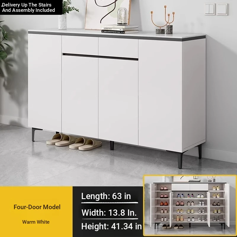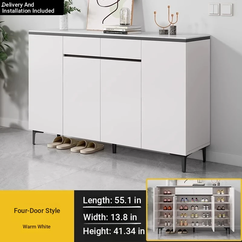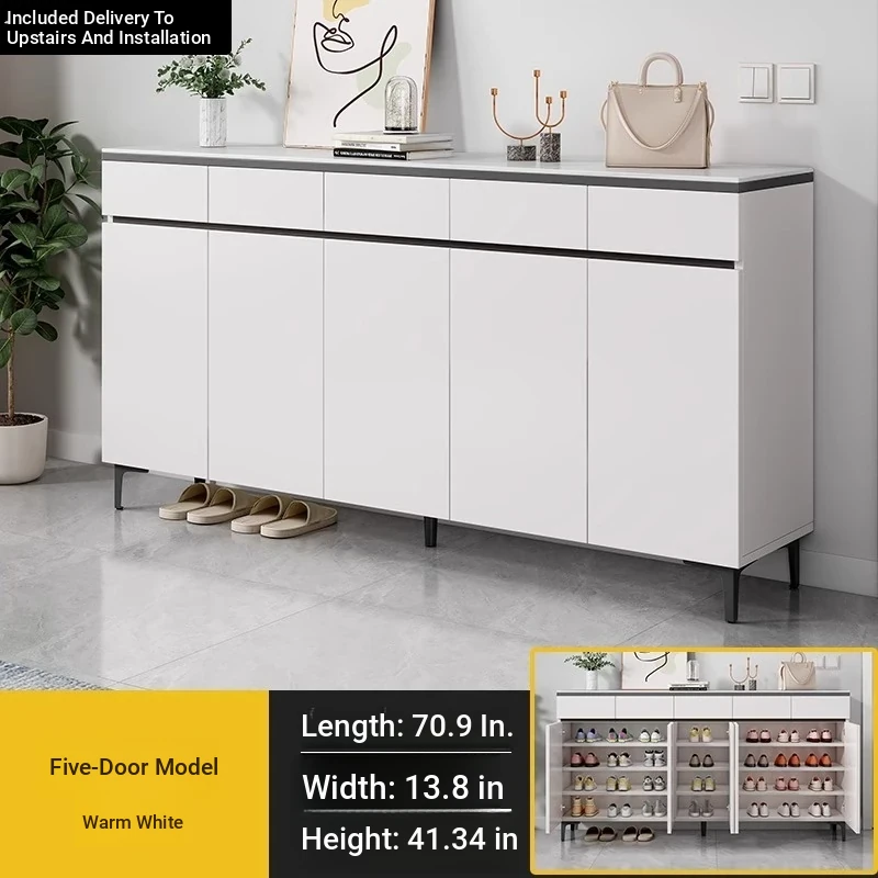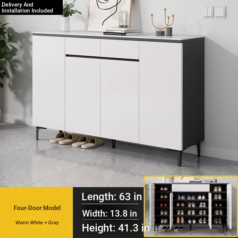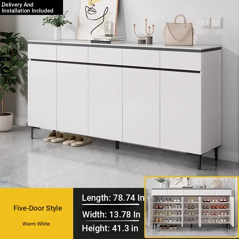 豪華な無垢材のロックボード靴収納キャビネット - モダンでシンプルなデザイン、お家の入り口に最適!厚みのある構造で丈夫、リビングの壁際に置いてスッキリ整理整頓。収納力抜群で、おしゃれな玄関を演出します!