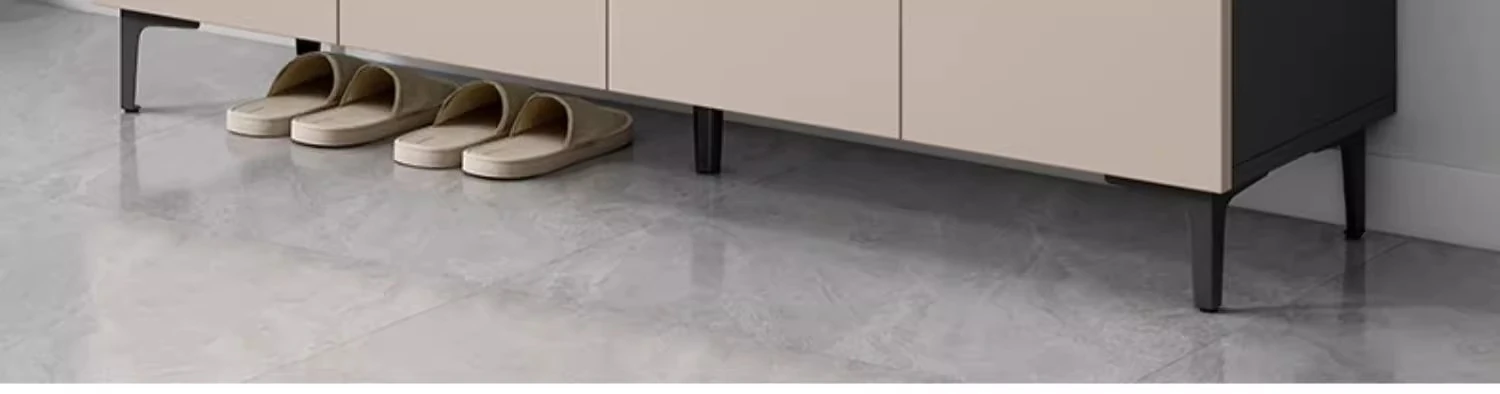 【軽奢グレー】120cm無垢材シューズキャビネット(ストーントップ+金属脚)